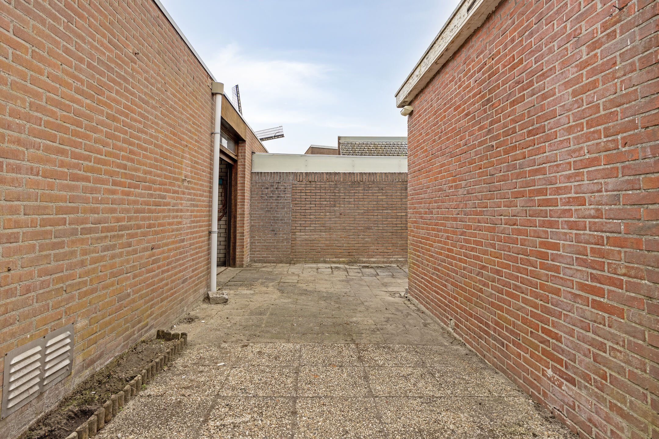 De woning beschikt over een bescheiden, onderhoudsvriendelijke binnenplaats met toegang tot de garage. Hier geniet u van privacy en er is voldoende ruimte voor het plaatsen van een zitje.