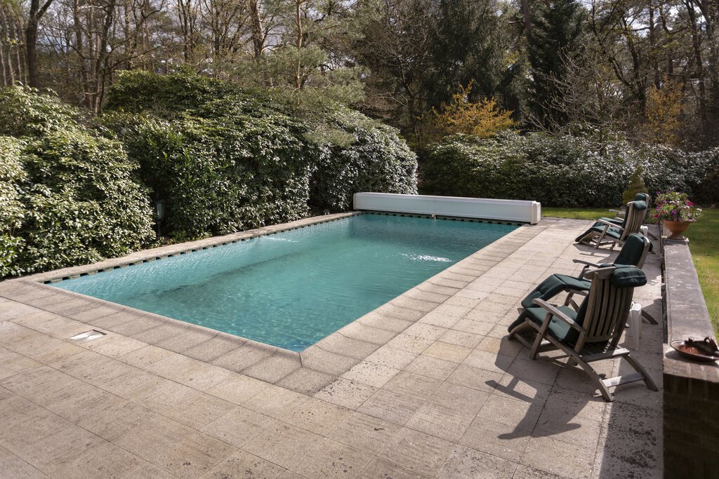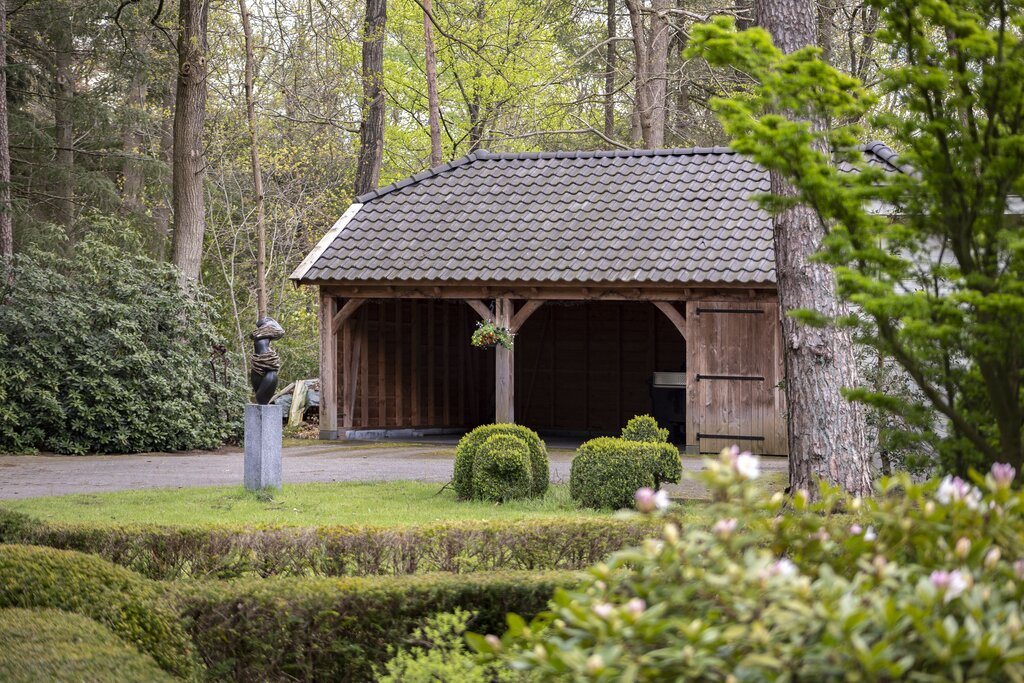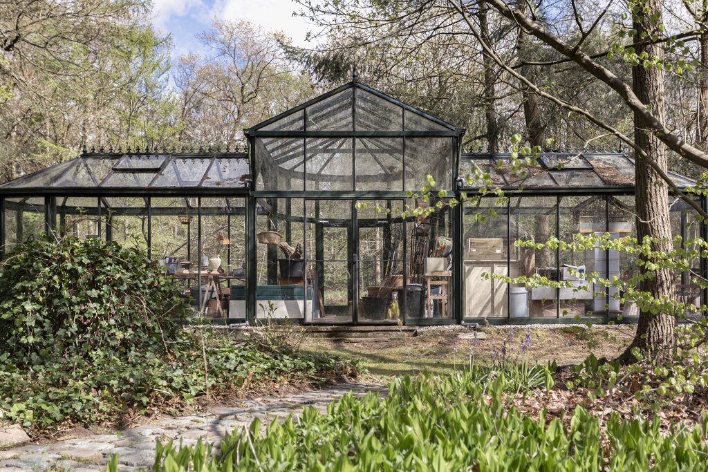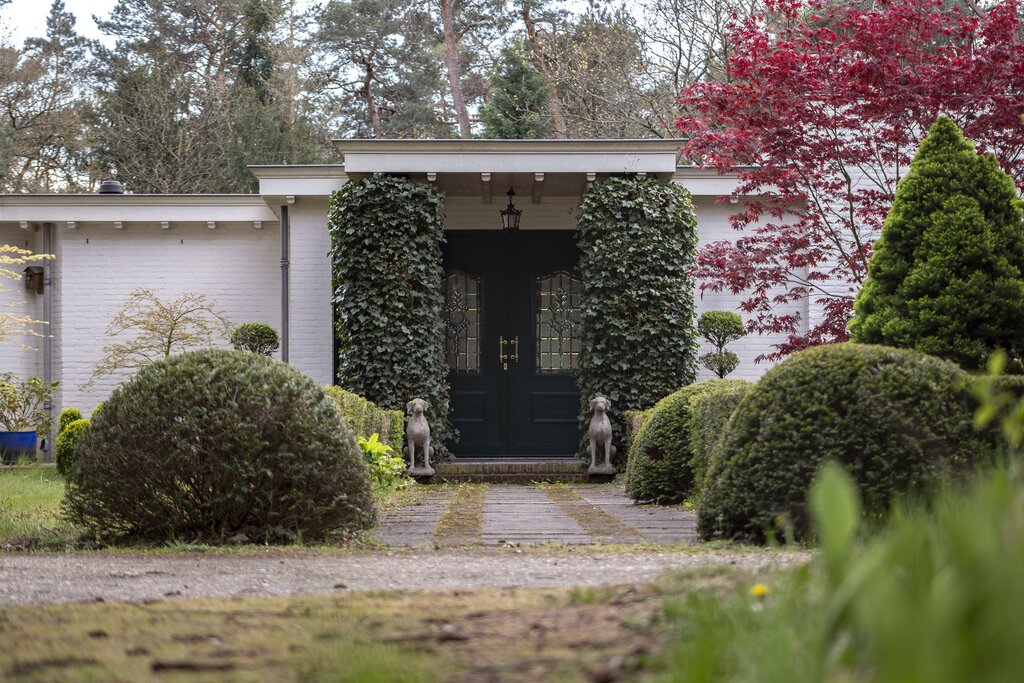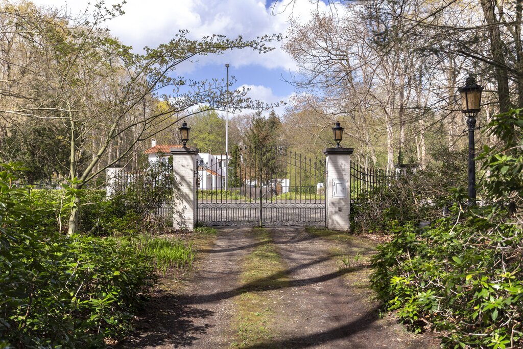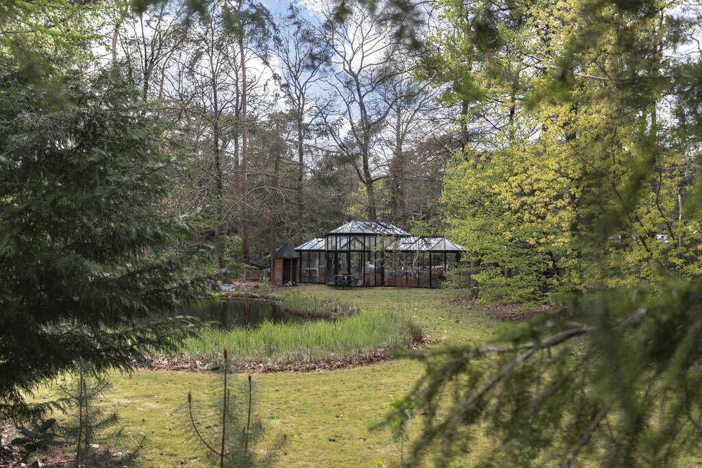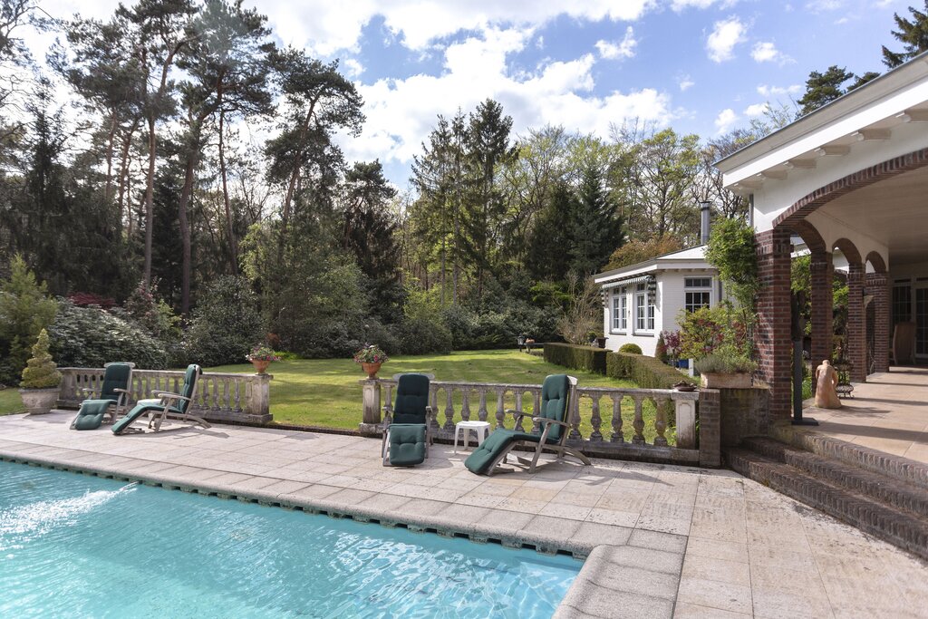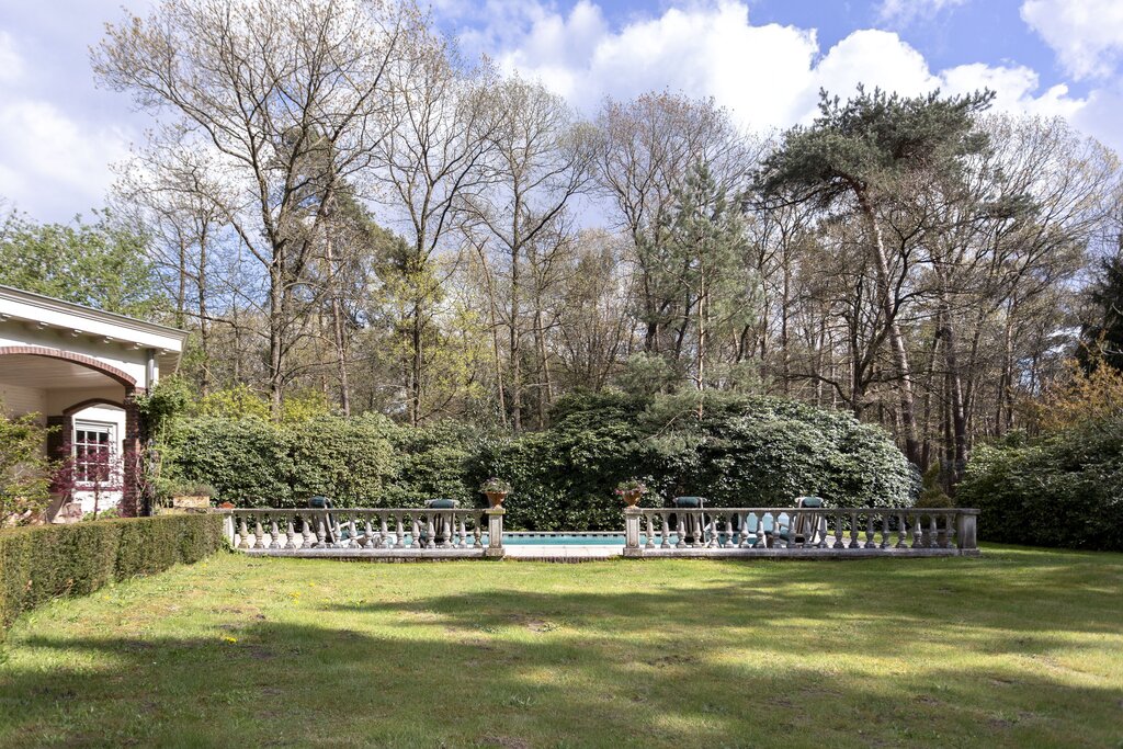 • BUITEN Bos/landgoed In de directe omgeving van de villa: klassieke-lantaarnverlichting 2 luxe afgewerkte veranda's Met pannen gedekte open schuur naar Engels voorbeeld Orangerie naar Victoriaans model -in mooie staat Vijverpartij Dierenrennen Taxustuin Ommuurde 'kloostertuin' Heerlijke achtertuin aan de zuidzijde Beregeningssysteem Verwarmd zwembad 3 aanrijroutes naar de villa Het perceel is geheel omheind; de toegangspoorten zijn elektrisch te bedienen.