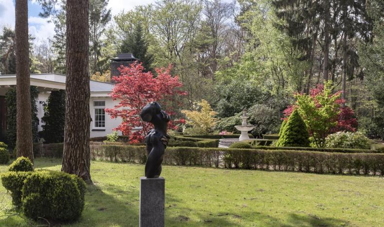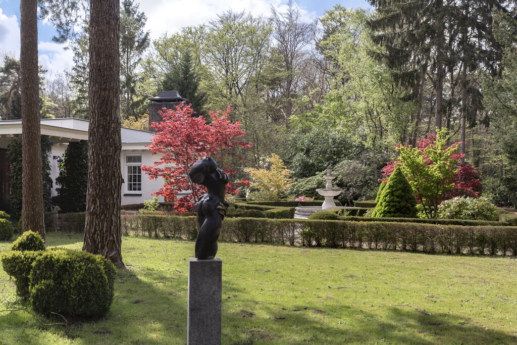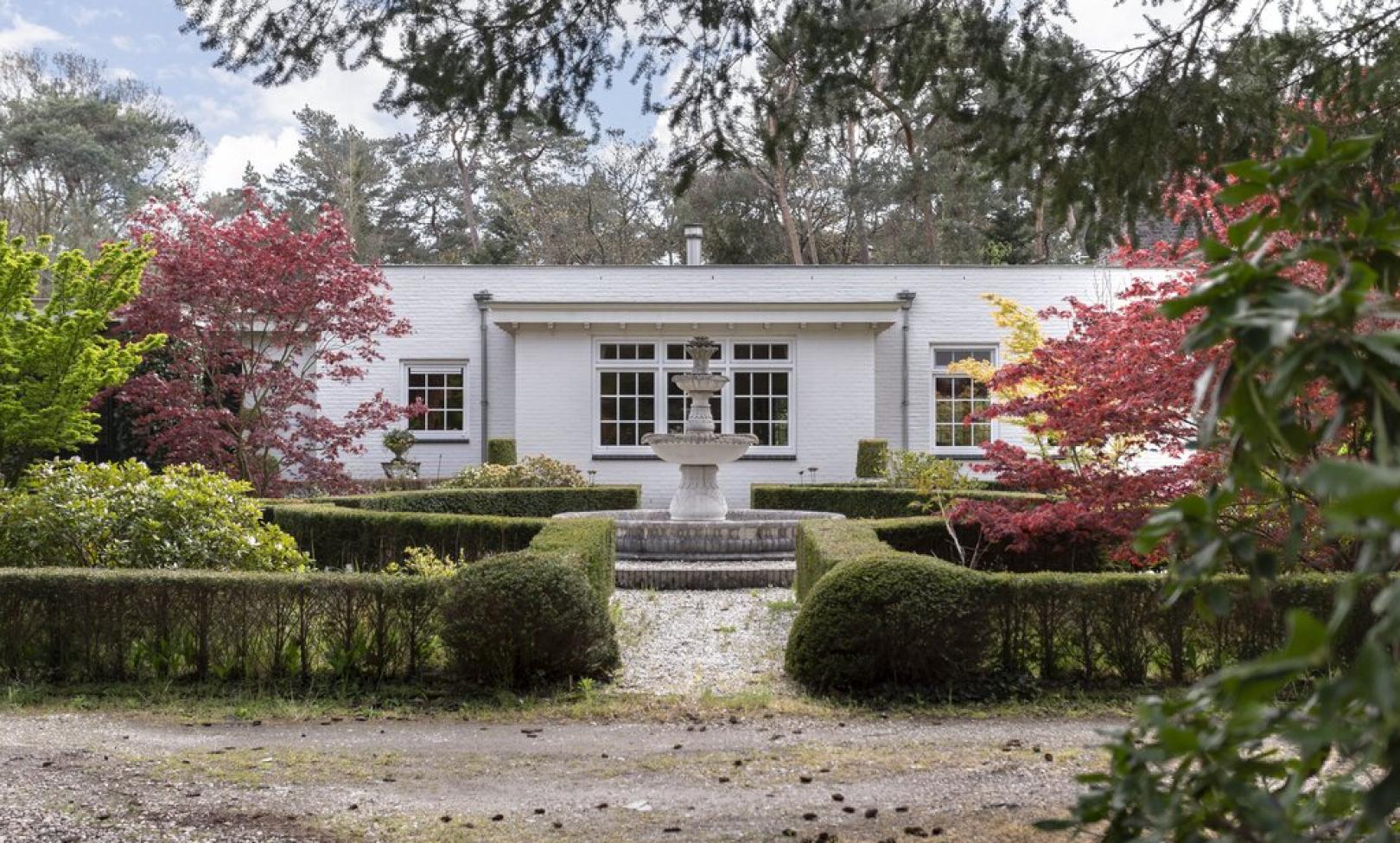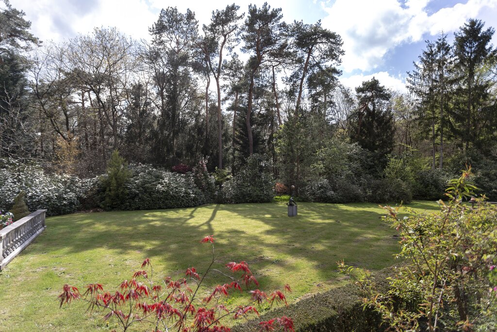 KONINKLIJK GENIETEN Hier leven wil ook zeggen: welhaast koninklijk genieten van de pracht die het gemengde bos te bieden heeft. Onder de fraaie boomgroepen bevinden zich onder meer prachtige esdoorns. Eeuwlingen en jongere bomen en struiken wisselen elkaar af. Het zijn onder andere partijen rododendrons die de drijflanen van weleer flankeren. Ze vormen een meerwaarde voor het bos: ze bieden mooie doorzichten. Vandaag de dag zijn ze in gebruik als wandelpaden. De indeling, met direct rond de villa een aantal aangelegde tuinen, duiden op het plezier en energie die de eigenaren aan de dag hebben gelegd om hier de ideale woonplek van te maken.