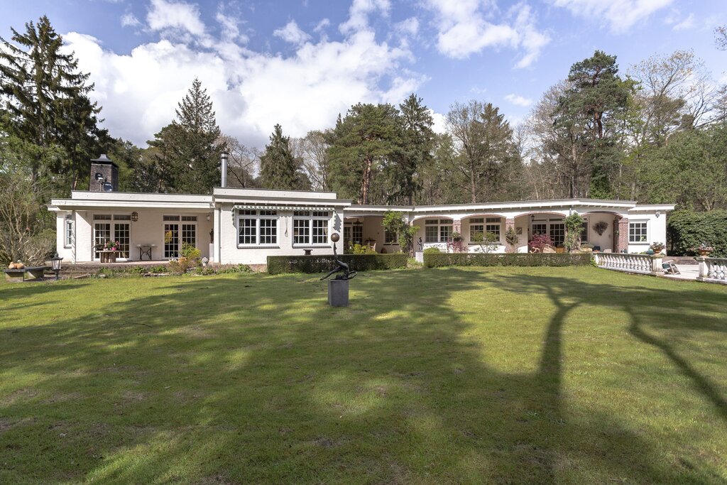 ENGELSE TOUCH De fraai gerenoveerde villa is volledig gelijkvloers. Hij is met oog voor kwaliteit verbouwd tot Engels landhuis. Dat comfort hierbij het uitgangspunt was, blijkt uit het uitgekiende totaalbeeld en de verfijnde details; maar ook het onderhoudsvrije karakter en de goede staat waarin het pand verkeert spreken boekdelen. De luxueuze sfeer en grondige verbouwing was ingegeven door het idee dat de eigenaren hier zouden blijven wonen. De villa is sfeervol, heeft een goed doordachte indeling, is royaal en alle vertrekken bieden zicht op de buitenruimte. De meeste vertrekken die op het zuiden liggen, zijn voorzien van openslaande tuindeuren, de veranda's dragen bij aan de beschutte sfeer in het grotere geheel. Binnen zijn het de enorme woonkeuken, prachtig gesitueerde living -met zijn fraaie openhaard, bibliotheek -tevens met openhaard, en hal die de show stelen. De bijzondere keuken is uit de Painters Collection Royal van Siematic. Hij is op maat vervaardigd, en zeer gedetailleerd uitgewerkt. Om nog enkele details van de luxueuze afwerking te noemen: het indrukwekkende, op maat gemaakte interieur van de bibliotheek maakt het geheel tot iets bijzonders. In de meeste vertrekken ligt parket -in visgraatverband gelegd en afgewerkt met een ebbenhouten bies. Plafonds zijn voorzien van mooie sierlijsten, in de keuken is de kookunit voorzien van twee maal viervlaks inductie-kookplaten. De slaapkamers zijn alle voorzien van met de hand vervaardigde kasten. De raampartijen rondom dragen bij aan de Engelse touch. Ze zijn vervaardigd in de Holland-100-lijn en zijn onderhoudsvrij. De kelder meet zo'n 15 meter in lengte: een fijne extra ruimte voor opslag.