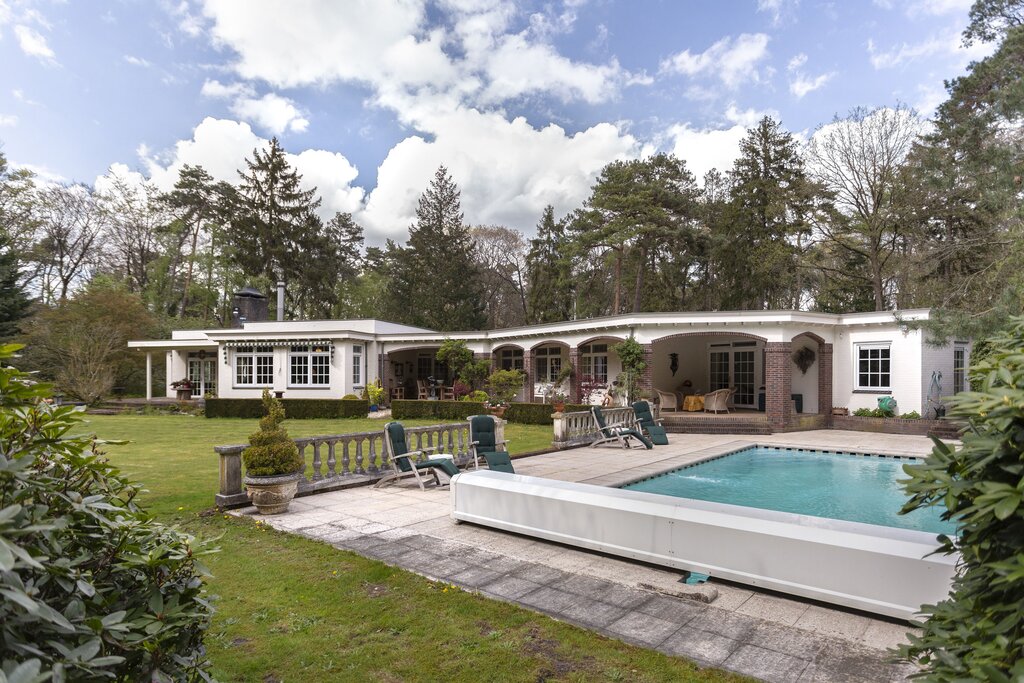 LUXUEUZE VILLA De luxe villa is opgetrokken in Engelse landhuis-sfeer • is hoogwaardig gerenoveerd • heeft modern comfort • ligt op een fraai eigen landgoed/bosperceel met mooie binnentuinen en veranda's • heeft een royaal verwarmd zwembad • biedt veel privacy • is voorzien van 6 overdekte parkeerplaatsen
