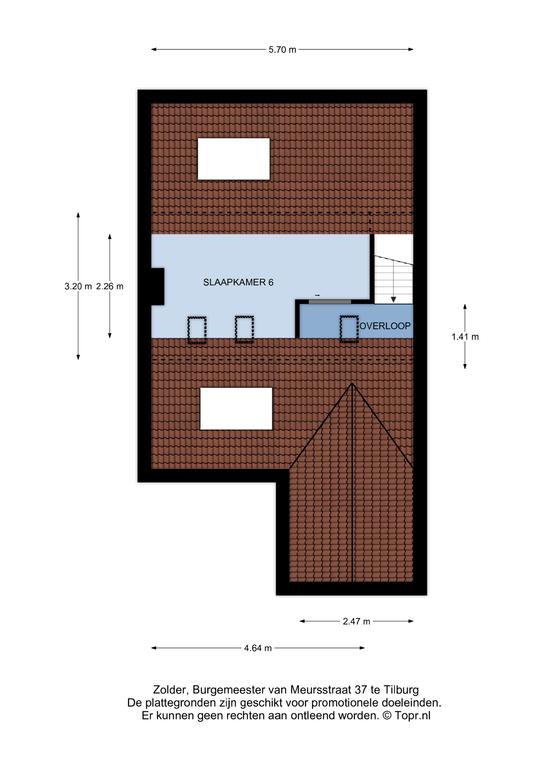 Zolder: Op de zolder bevindt zich de zesde slaapkamer.