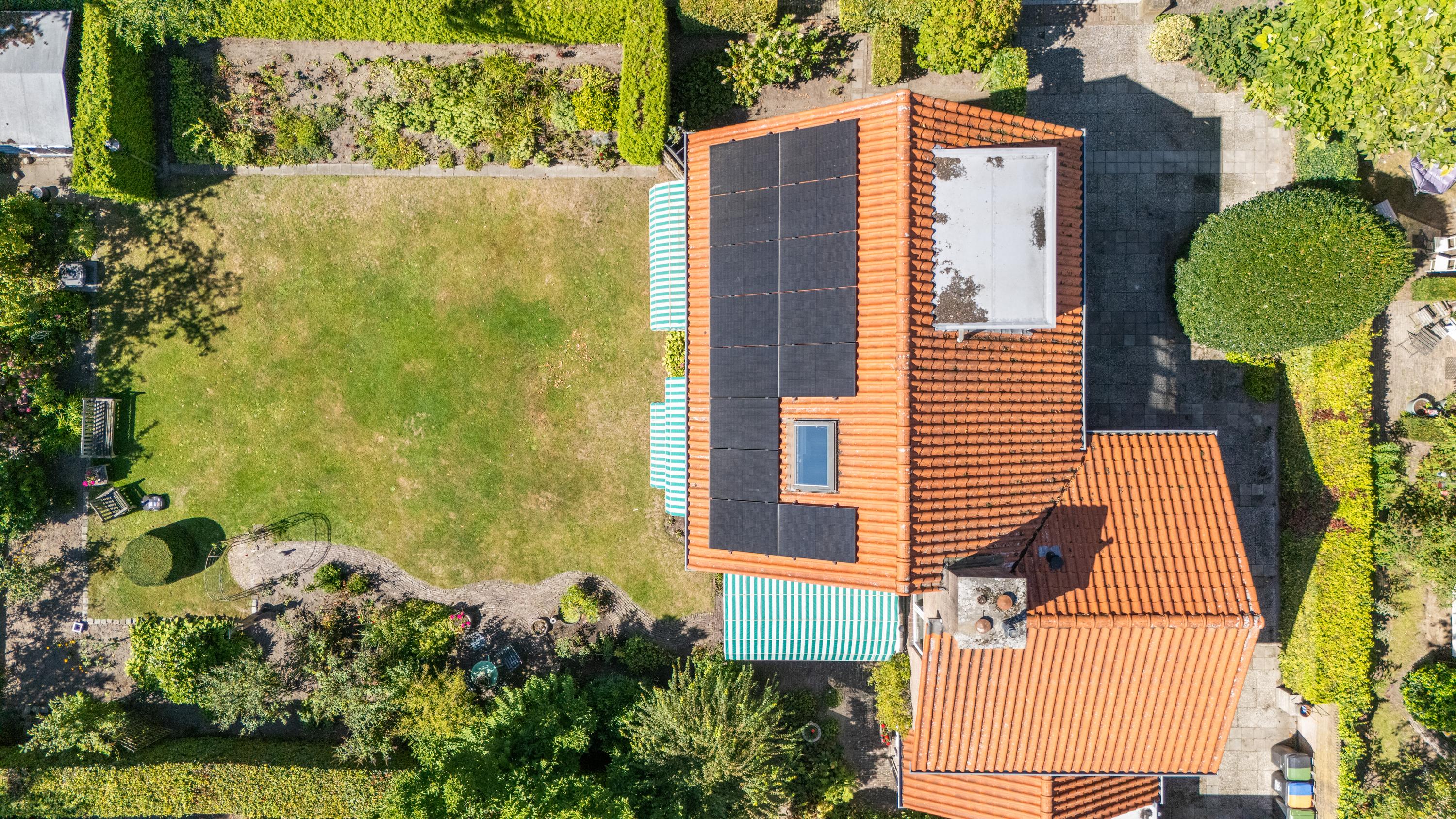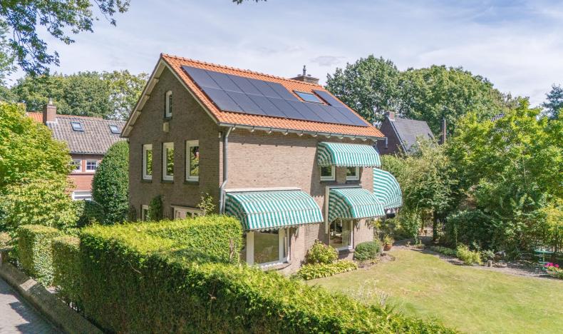Techniek en duurzaamheid Het huis is door de jaren heen met zorg onderhouden en technisch verbeterd. Het beschikt over veertien zonnepanelen, een warmtepomp met hybride ondersteuning (gasketel-back-up bij extreme kou), airconditioning (ook voor verwarming), een snellader voor een elektrische auto, grotendeels dubbel glas, screens en markiezen aan de zonzijde en een nieuw dak. Om het karakter van het huis te waarborgen, hebben twee kleine ramen met ronding enkel glas.