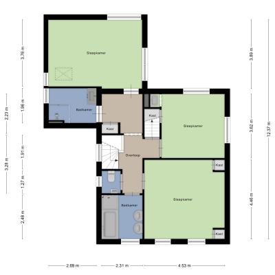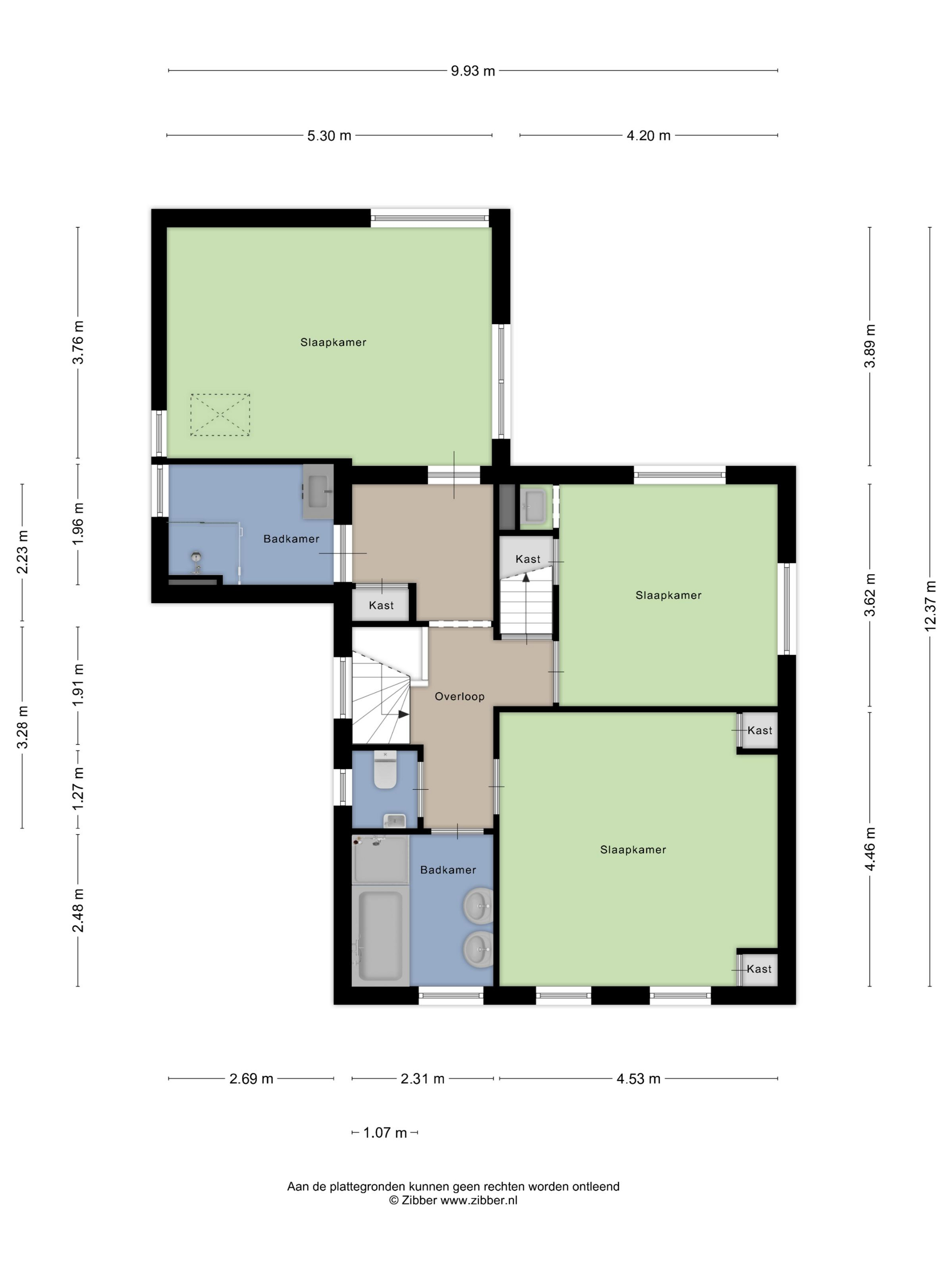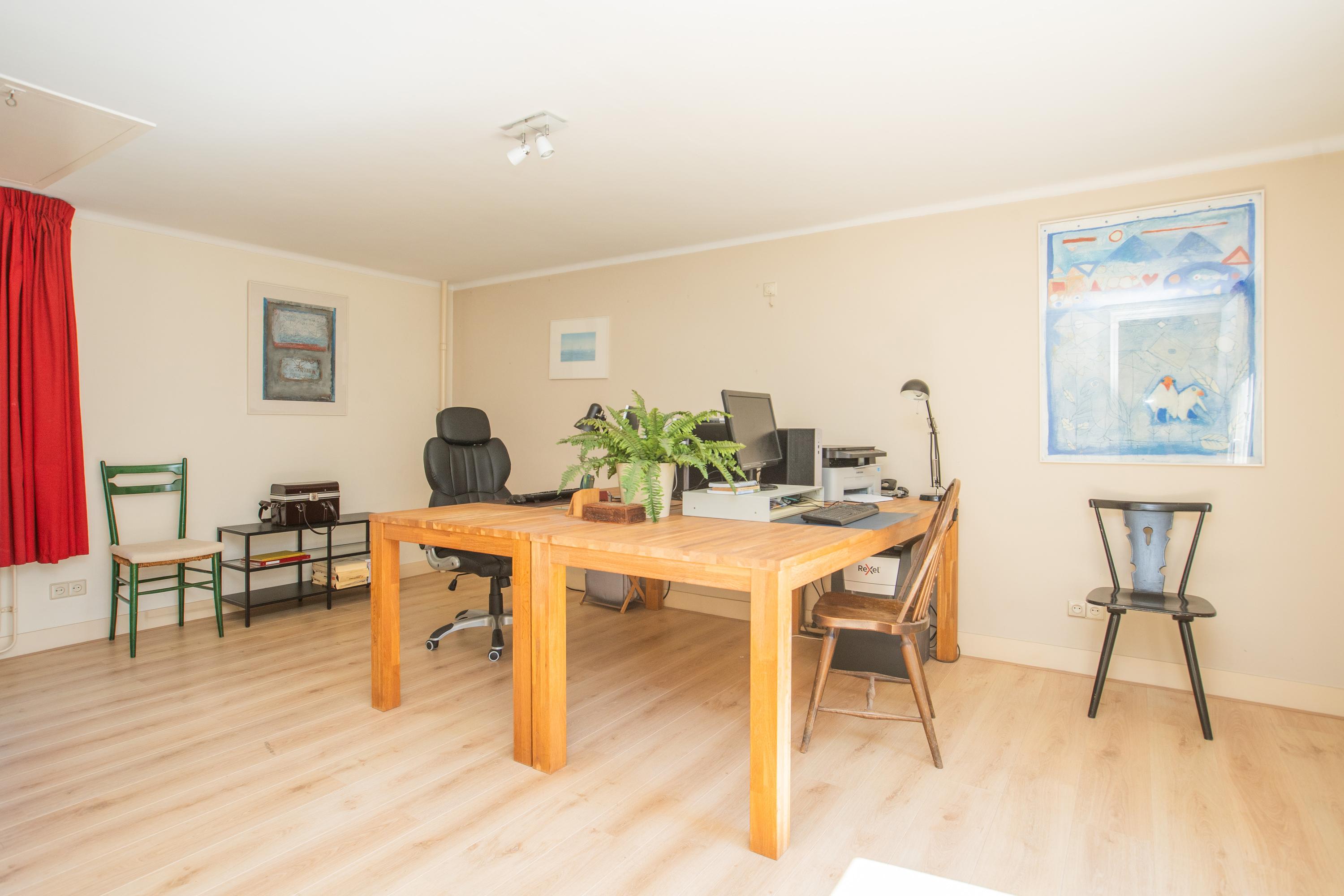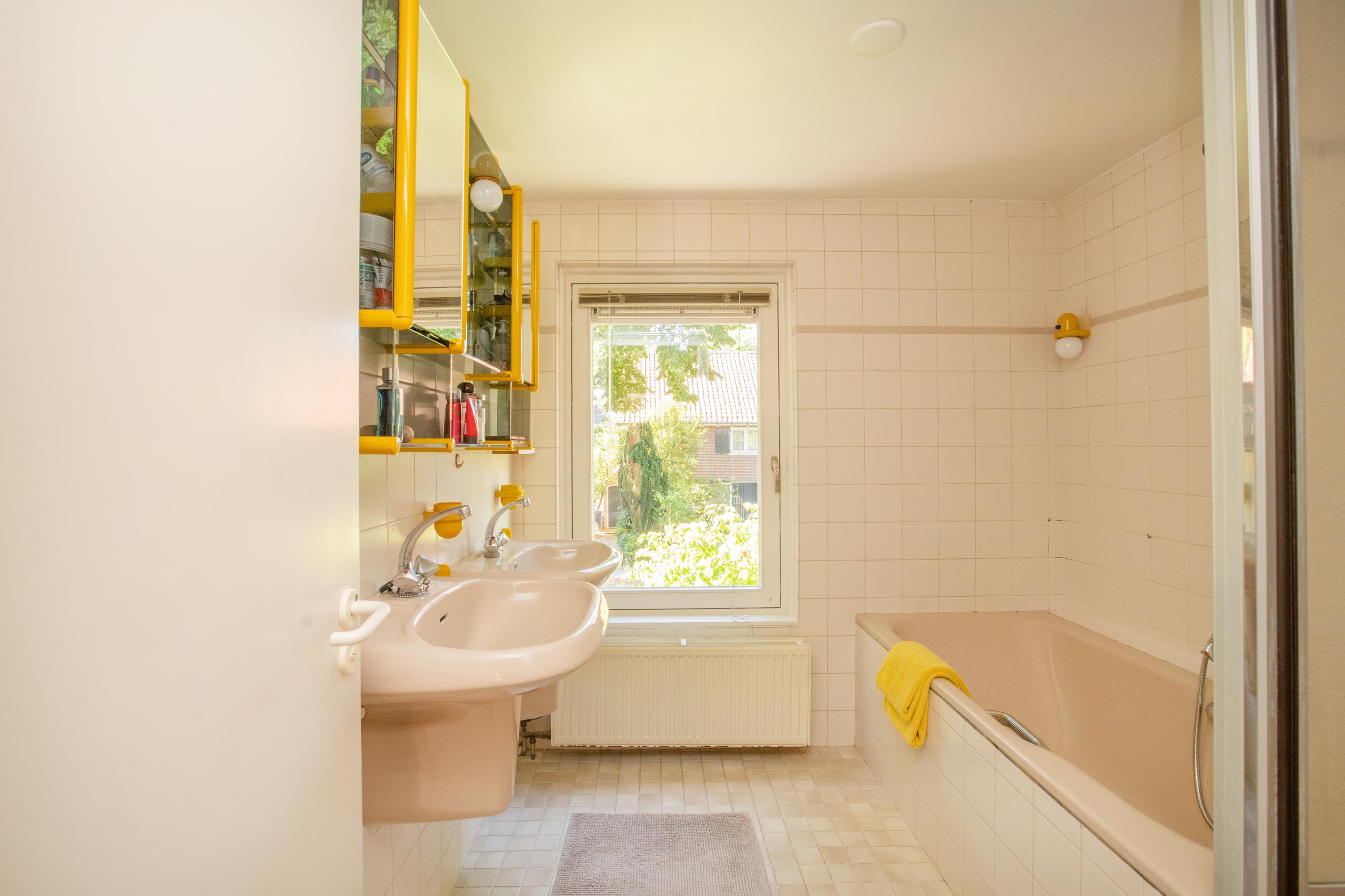 Eerste verdieping met meerdere slaapkamers Op de eerste verdieping wachten meerdere slaapkamers, elk met hun eigen karakter. De hoofdslaapkamer heeft twee inbouwkasten en uitzicht op de groene, rustige straat. Een tweede ruime kamer – met ramen aan beide zijden – biedt flexibiliteit als kantoor, logeerkamer of atelier. Hier is toegang tot een zolder, bereikbaar met een vlizotrap, waar de cv-ketel is ondergebracht. Er is een praktische linnenkast op de overloop. Twee badkamers maken het comfortabel voor grotere gezinnen: één met ligbad, douche, dubbele wastafel en de andere met een royale inloopdouche en wastafel. Daarnaast is er een apart toilet met daglicht. De derde slaapkamer met twee grote ramen op de tuin wordt nu ‘de mooiste’ genoemd. Deze kamer heeft een vaste kast en een eigen wastafel.