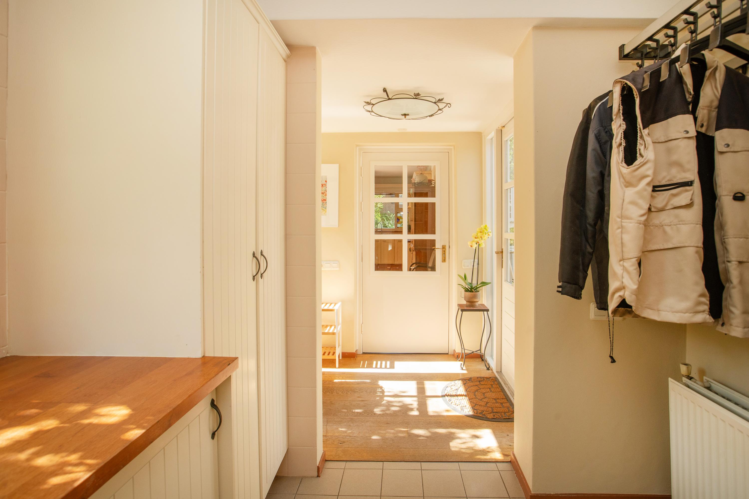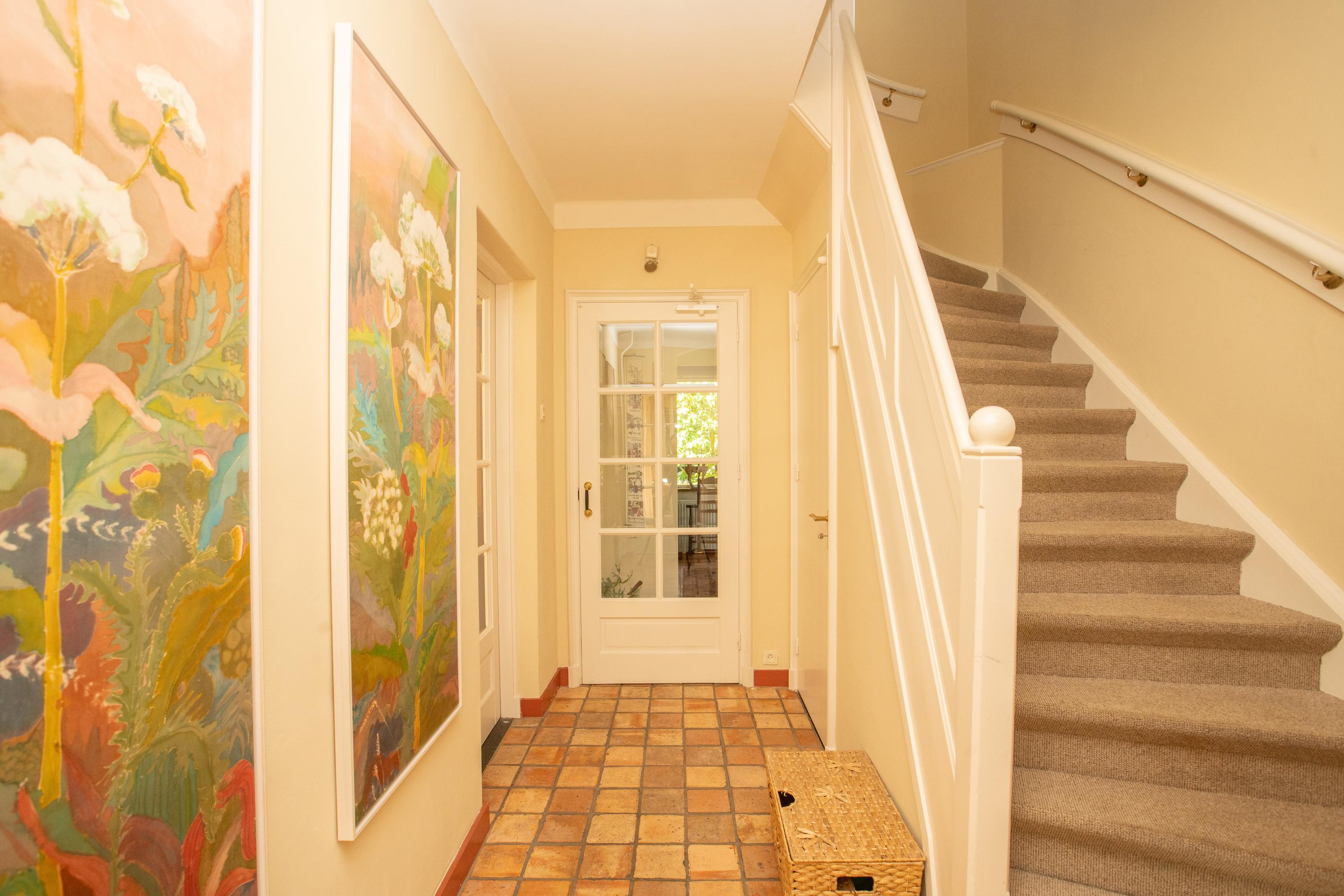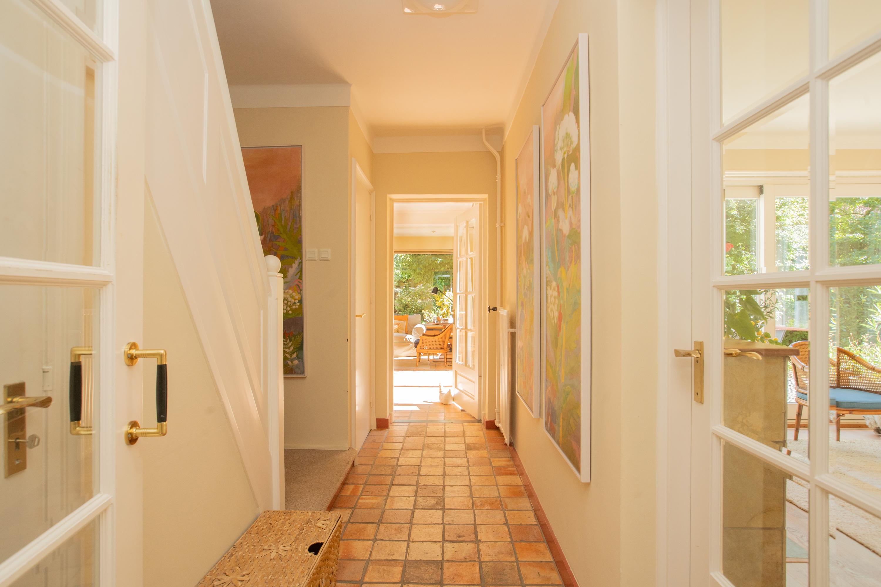 Een tuin met een eigen signatuur De tuin is een verhaal op zich. Liefdevol ontworpen en jarenlang verfijnd door de bewoonster zelf, met een scherp oog voor compositie en seizoensbeleving. Met zichtlijnen die kloppen, beplanting die bloeit in de juiste seizoenen en plekken die bewust besloten of open zijn gehouden. De verrassende combinaties inspireerden zelfs de tuinman. Hier bloeien rozen op precies de goede plek, staan sierbloesems als natuurlijke sculpturen en er is een vijver. De tuin leeft, straalt rust uit, en elk raam in huis biedt zicht op iets unieks. Kinderen kunnen buiten verstoppertje spelen tussen het groen, vissen kijken in de vijver, of op blote voeten door het gras ravotten. Terwijl jij vanaf één van de terrassen rustig toekijkt.