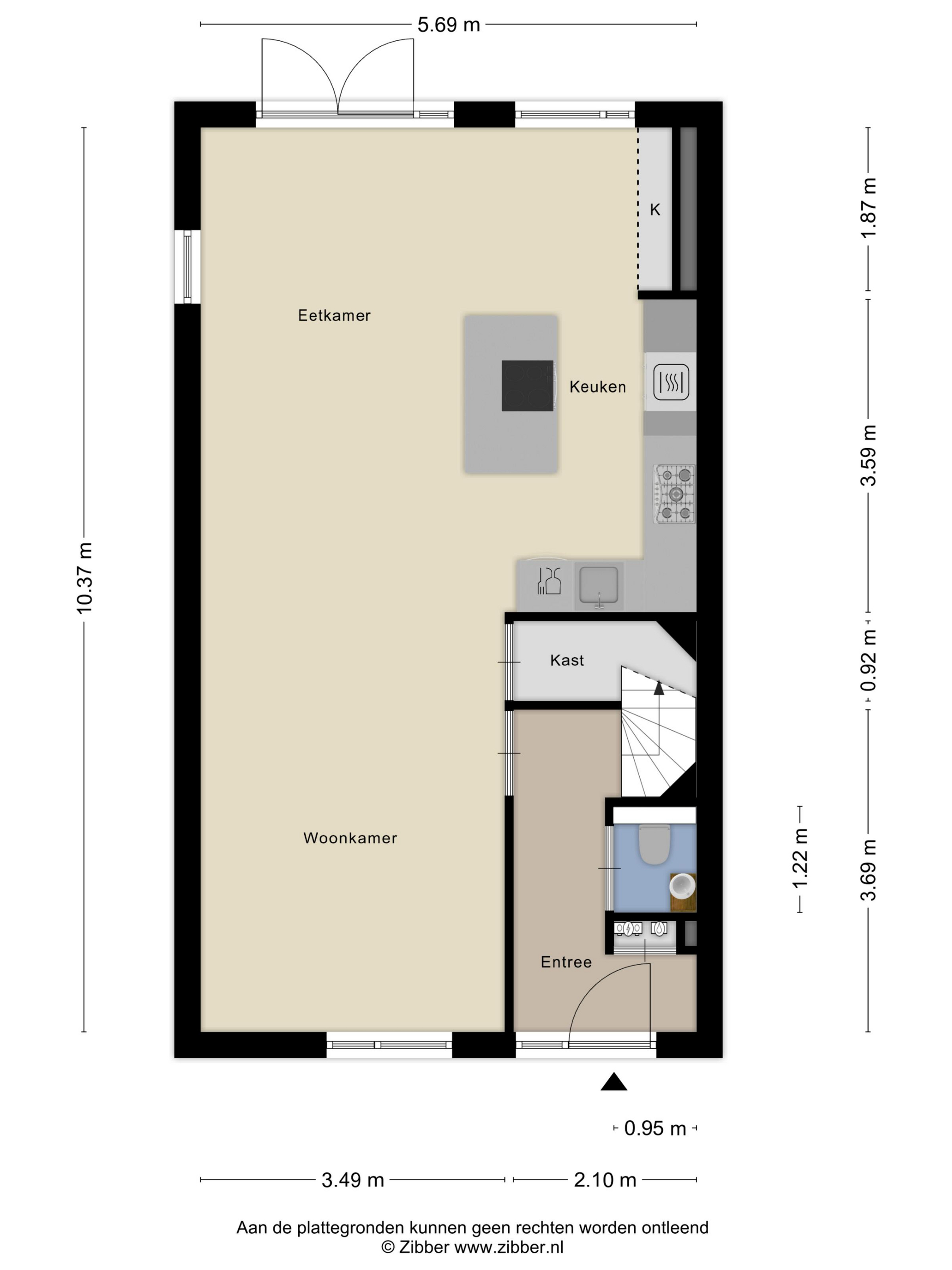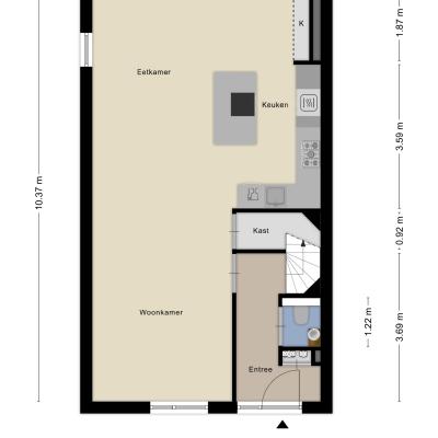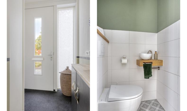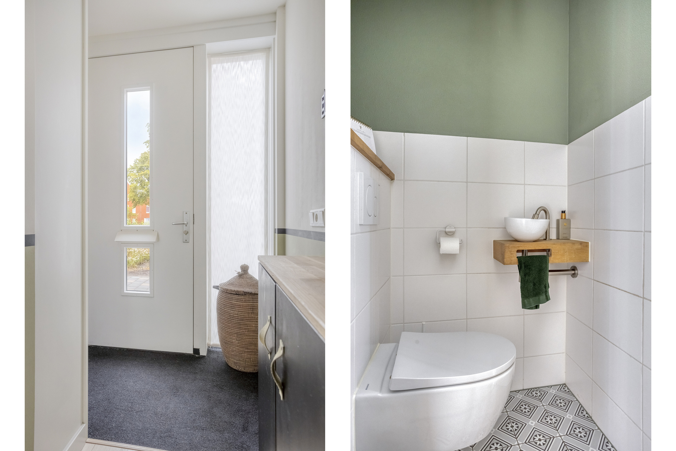 Entree: Bij binnenkomst aan de voorzijde van de woning treedt u binnen in een ruime hal. Vanuit de hal heeft u toegang tot de toiletruimte en de trap naar de eerste verdieping. De hal vormt het hart van de begane grond en biedt een uitnodigende eerste indruk van de woning.
