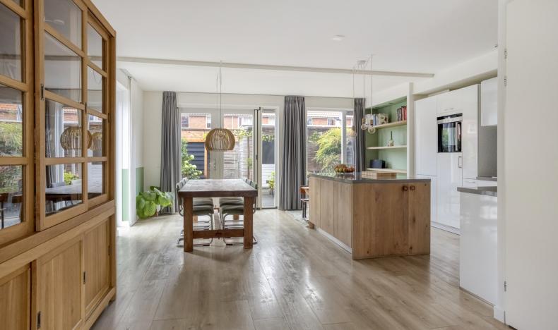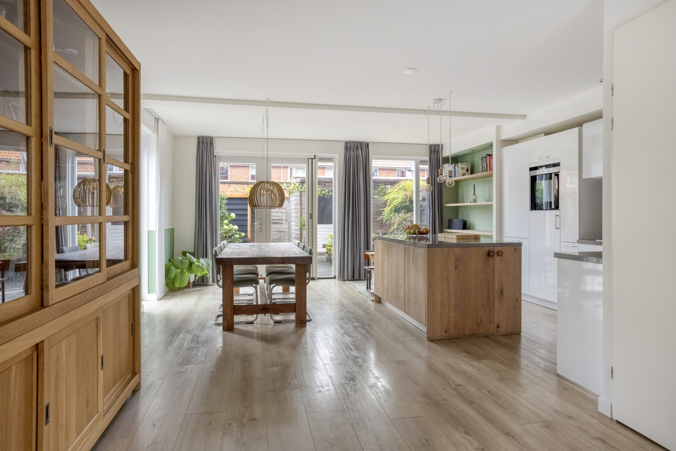 Woonkamer: Centraal op de begane grond bevindt zich de open woonkamer, waardoor u een comfortabele zithoek kunt combineren met een gezellige eetruimte. Door de vele ramen rondom valt het daglicht royaal binnen, waardoor de ruimte ruimtelijk aanvoelt. De openslaande deuren naar de tuin maken het geheel compleet en bieden een fijne verbinding tussen binnen en buiten.