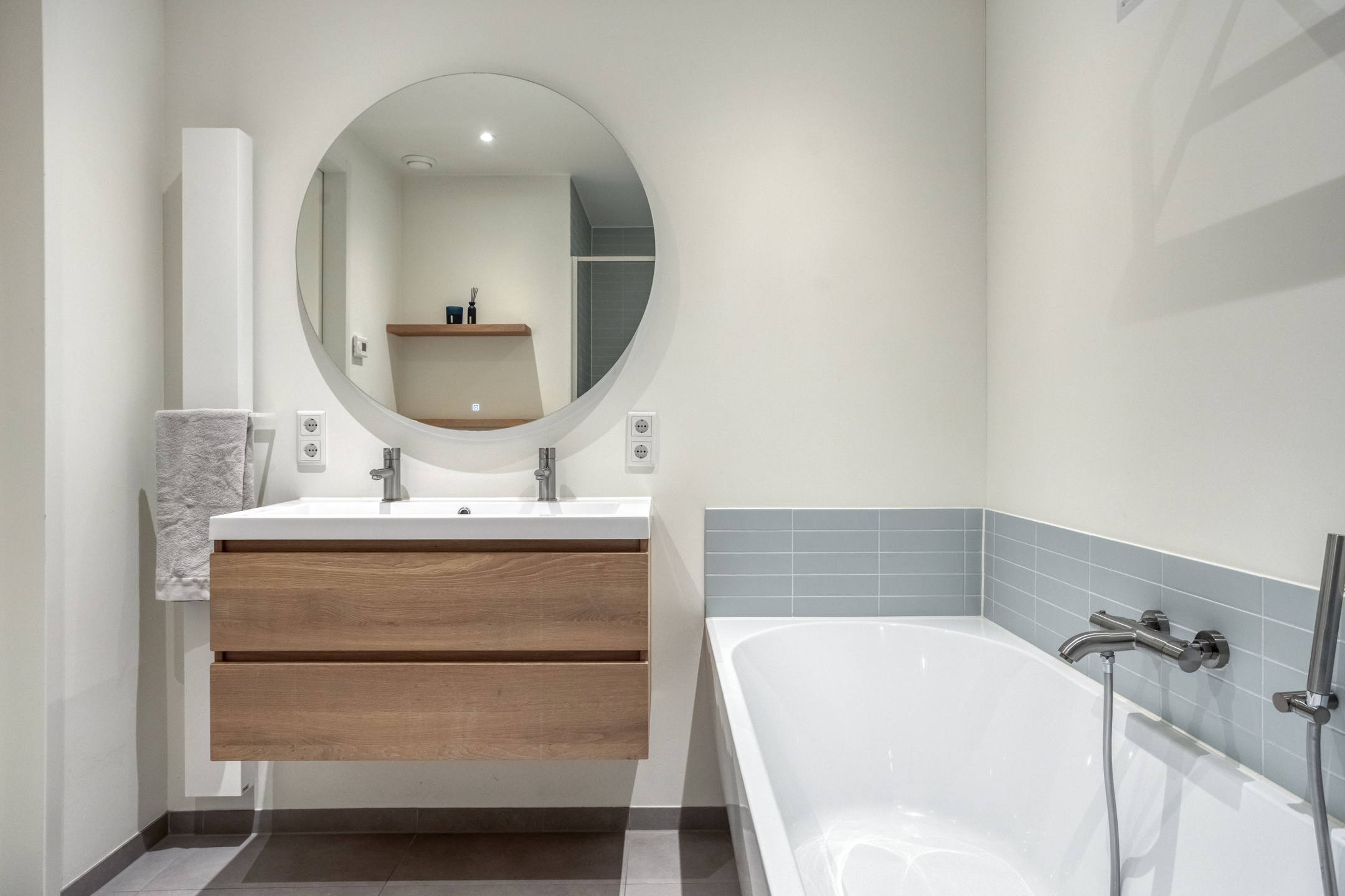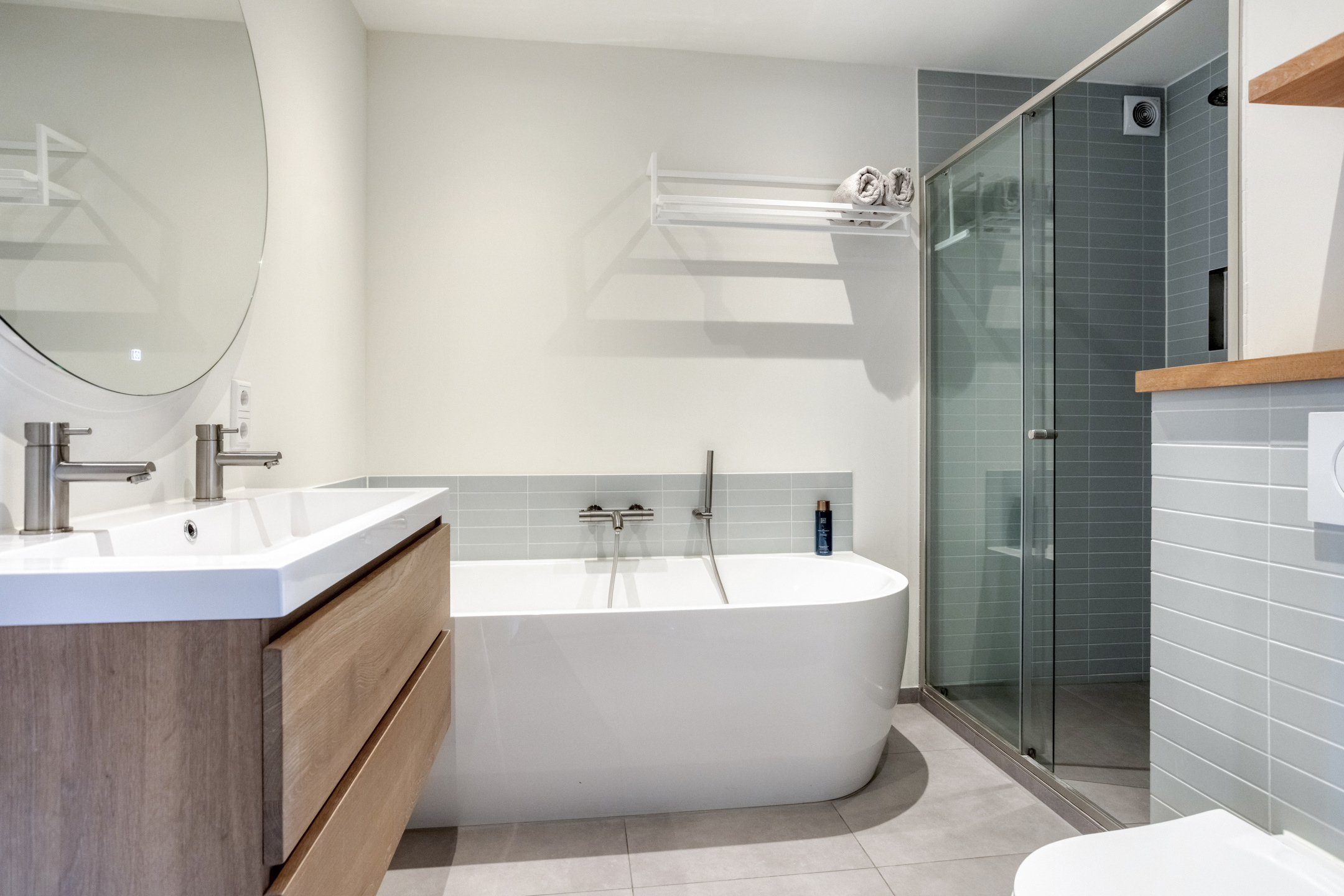 Sanitair: De moderne badkamer is betegeld en verkeert in een uitstekende staat. Deze is zowel modern als praktisch ingericht met een ruime douche met glazen schuifdeur, een ligbad, dubbele wastafel met spiegel en een zwevend toilet.