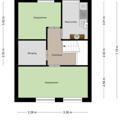 Tweede verdieping: Via een vaste trap bereikt u de tweede verdieping. Hier bevinden zich nog twee slaapkamers, een wasruimte en een berging. Hierdoor is deze verdieping ideaal voor extra woon- of werkruimte.