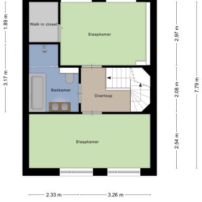 Eerste verdieping: Vanuit de hal komt u met de trap naar de eerste verdieping, waar zich twee slaapkamers en de badkamer bevinden. De verdieping biedt voldoende ruimte en mogelijkheden voor diverse indelingen en gebruiksfuncties.