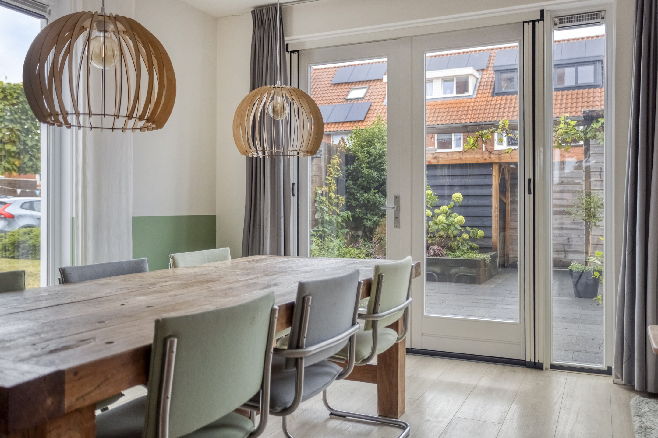 Bijzonderheden • Moderne, goed onderhouden gezinswoning • Totale woonoppervlakte van 147 m² • Vier slaapkamers, waarvan één met inloopkast • Open woon- en eetkamer met veel lichtinval • Moderne keuken met L-vormig aanrecht en kookeiland • Badkamer met ligbad, douche, dubbele wastafel en toilet • Tweede verdieping met twee extra slaapkamers, wasruimte en berging • Begane grond en eerste verdieping hebben vloerverwarming • Rolluiken aan achterzijde woning op de tweede verdieping • Zonnige, onderhoudsarme tuin met terras en berging • 12 zonnepanelen • Eigen parkeerplaats • Rustige, kindvriendelijke buurt met scholen, sportclubs en supermarkten in de buurt • Goede bereikbaarheid via openbaar vervoer en uitvalswegen