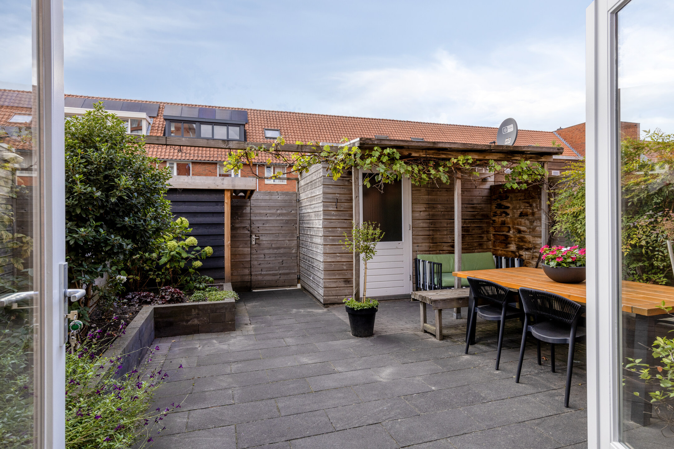 Buitenruimte: De zonnige achtertuin is direct toegankelijk via de openslaande deuren vanuit de woonkamer. De tuin is deels bestraat met groene accenten. Hierdoor is er voldoende ruimte voor het plaatsen van een tuinset. Of gaat u genieten op uw lounge set onder de overkapping bij de berging. De houten schuttingen maken het geheel compleet waardoor privacy wordt verkregen. Via een poort aan de achterzijde kunt u de tuin verlaten welke uitkomt op een rustige straat.