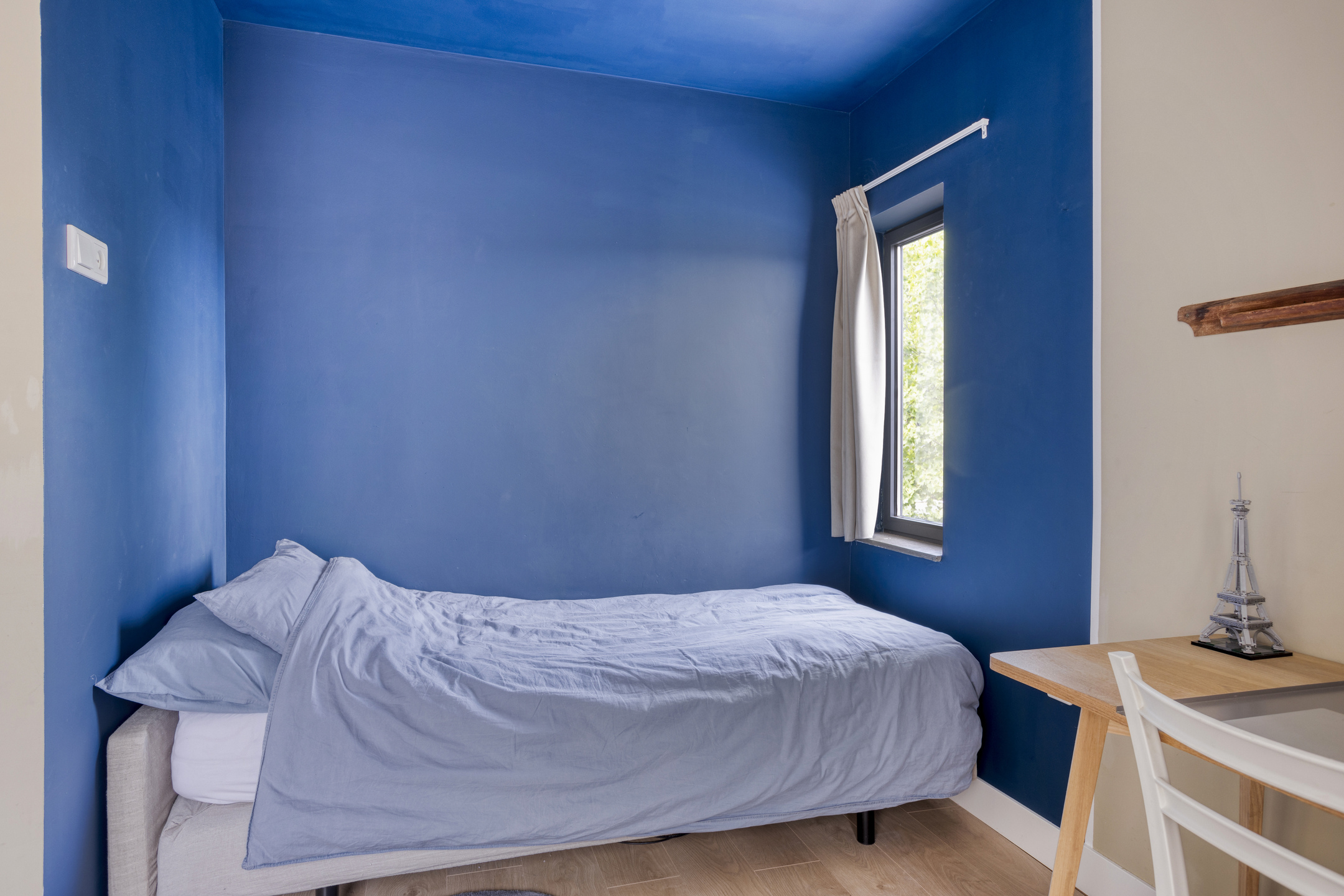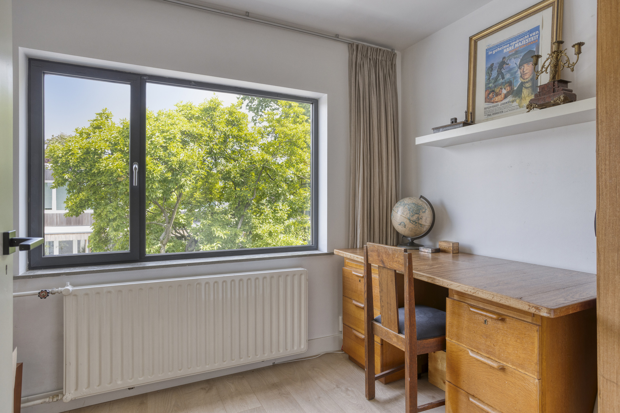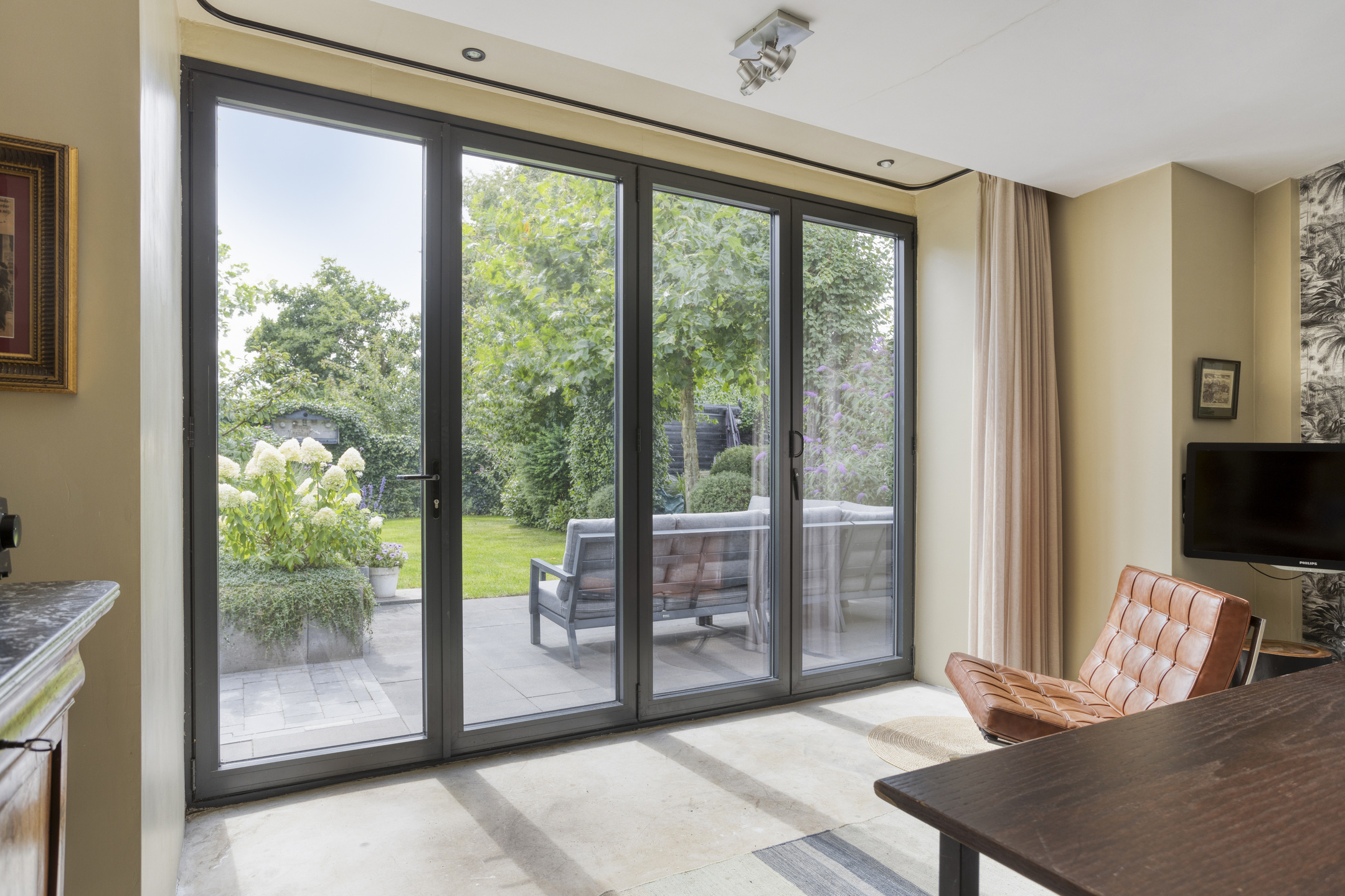 Aan de achterzijde bevindt zich een tuinkamer met een harmonicadeur, veel daglicht en een toilet. Deze ruimte is in gebruik als werkplek, wordt ook gebruikt als chillplek en leent zich net zo goed voor een atelier of wellnessruimte.