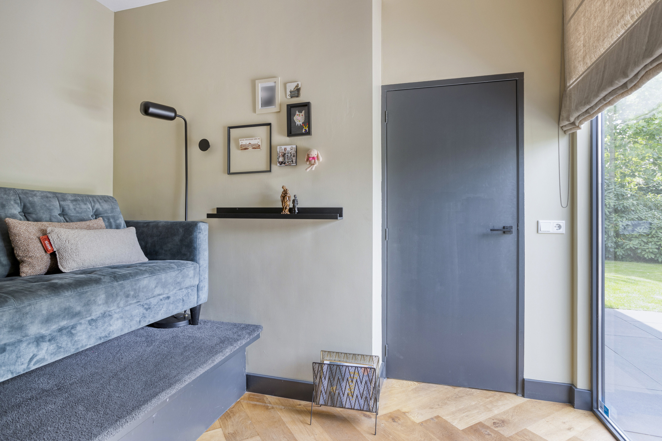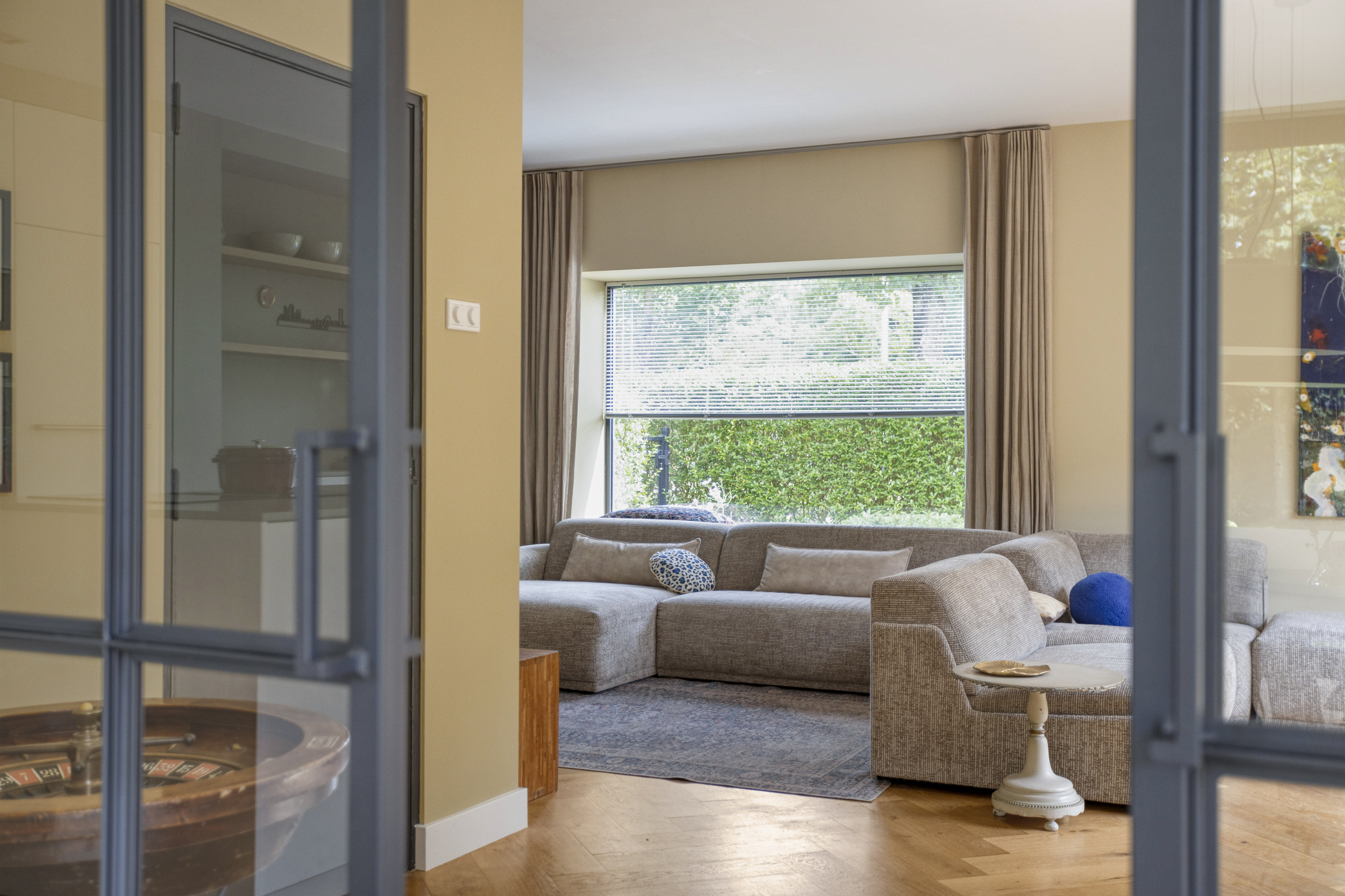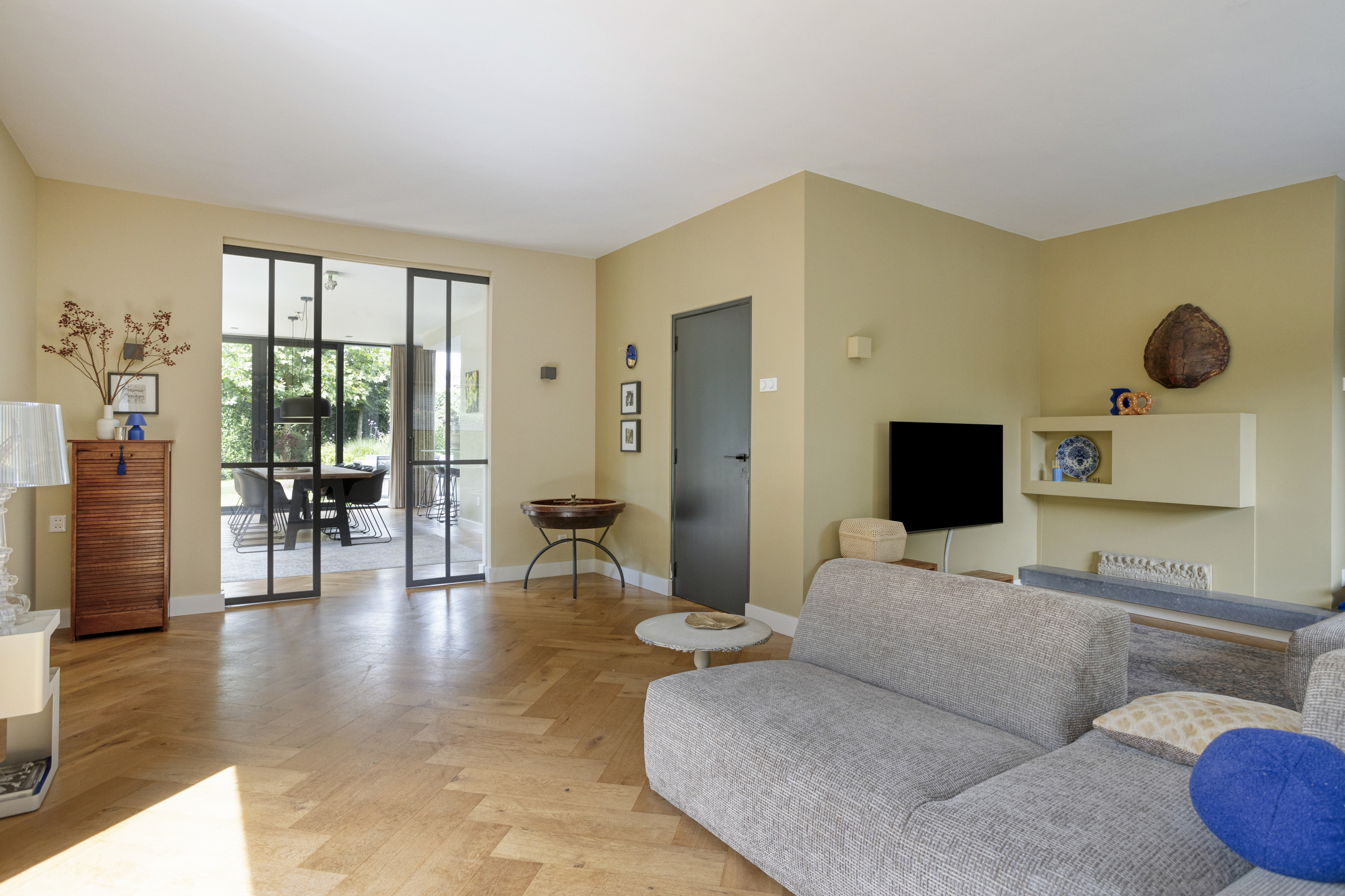 Grenzend aan de woonkeuken ligt een tweede leefruimte met zicht op de tuin. Een fijne plek om tv te kijken, een film op te zetten of gewoon te ontspannen.