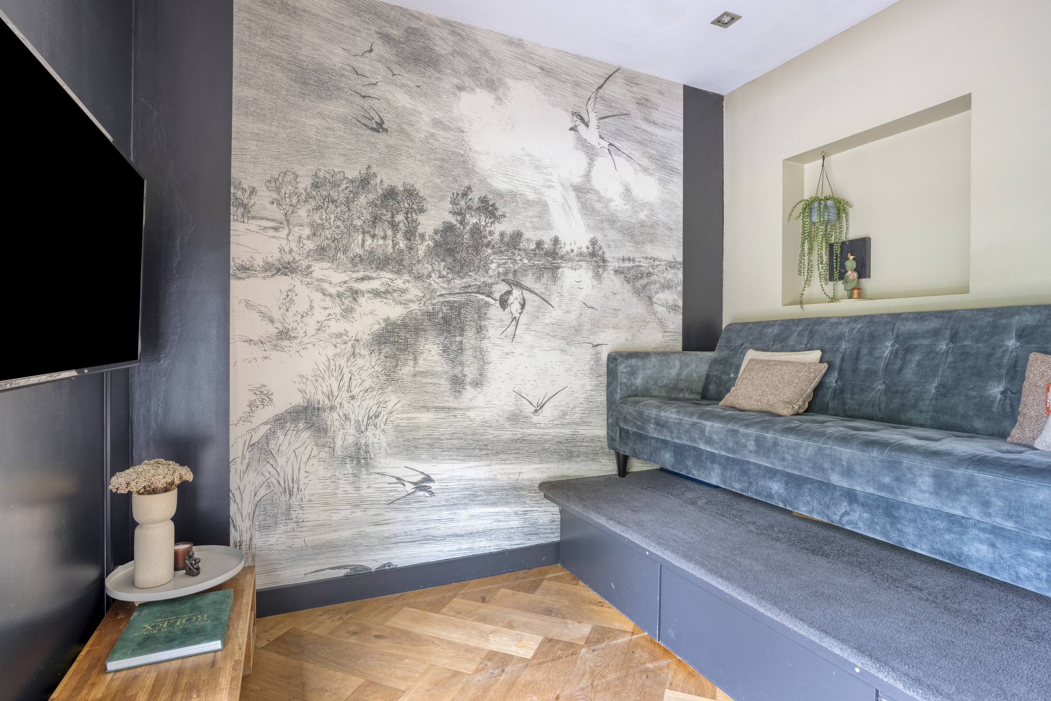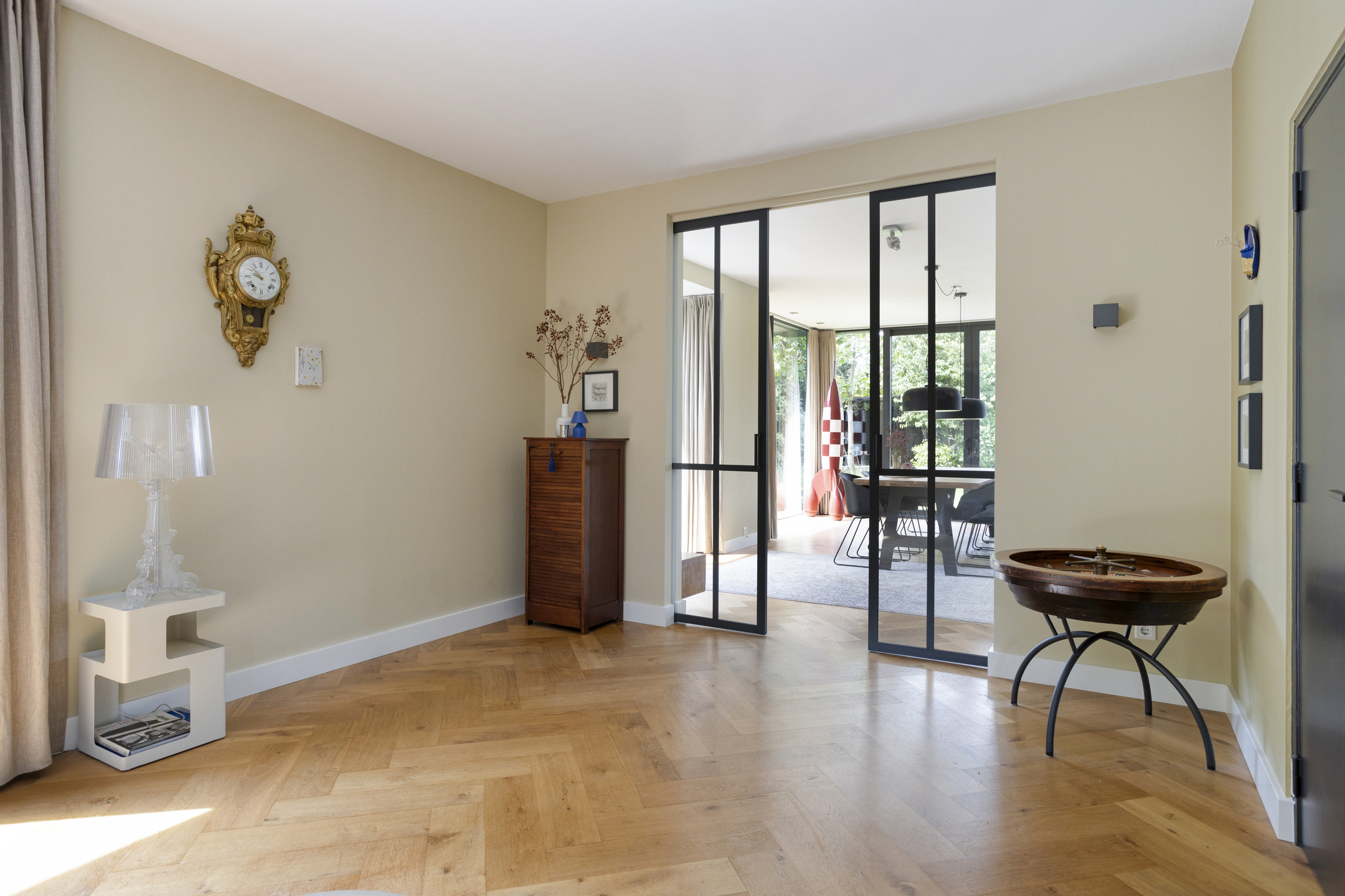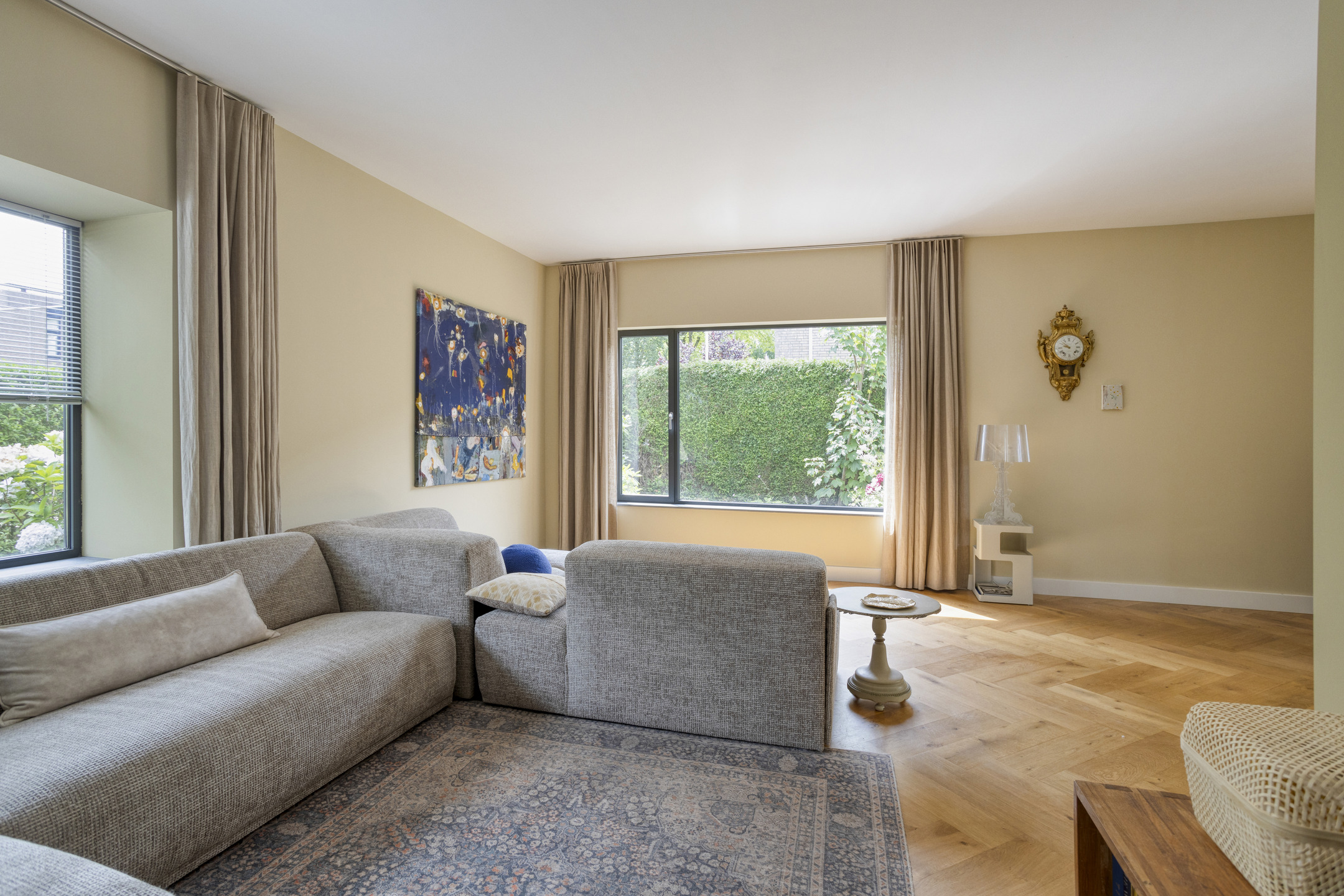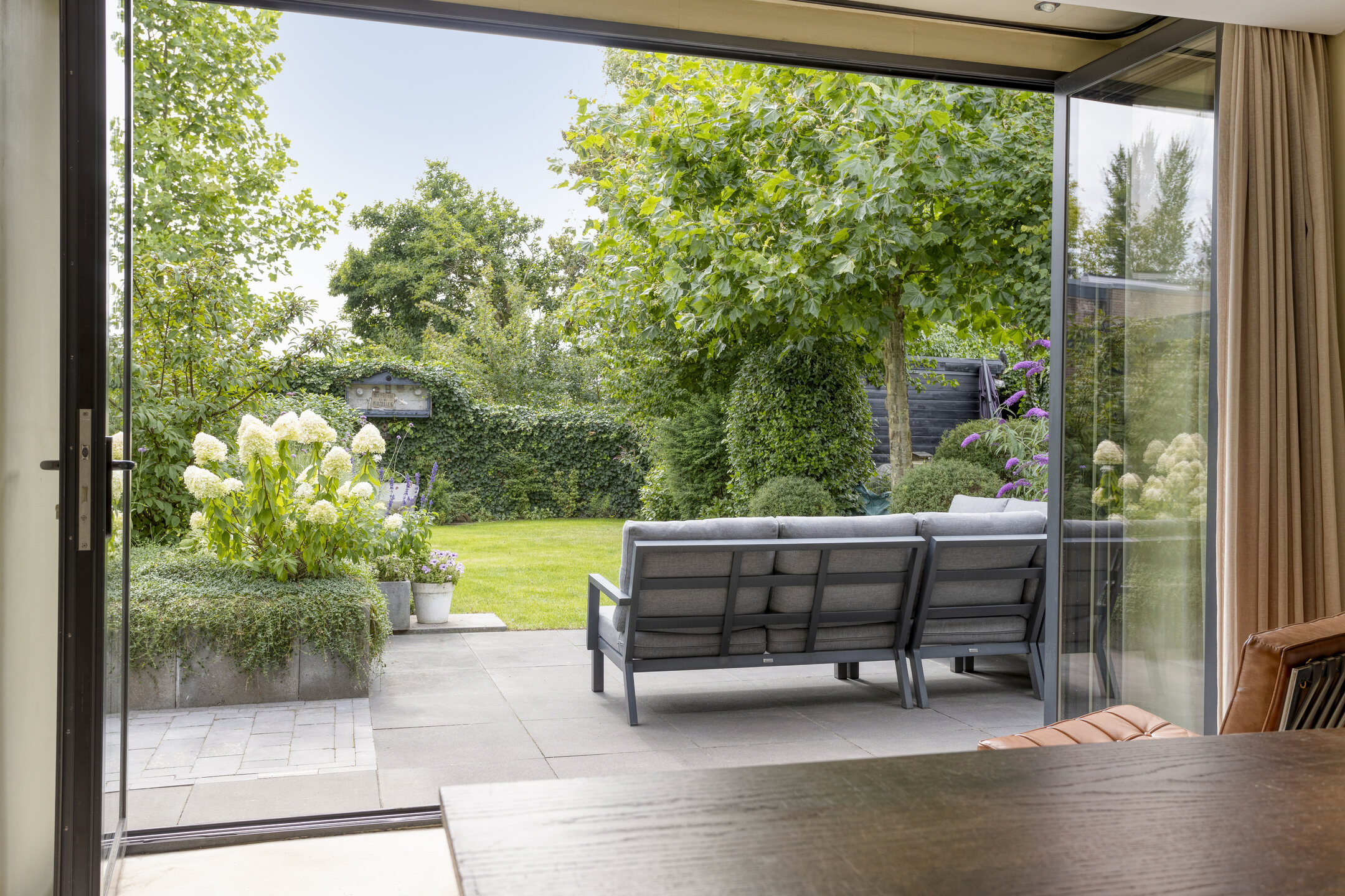 Grenzend aan de woonkeuken ligt een tweede leefruimte met zicht op de tuin. Een fijne plek om tv te kijken, een film op te zetten of gewoon te ontspannen.