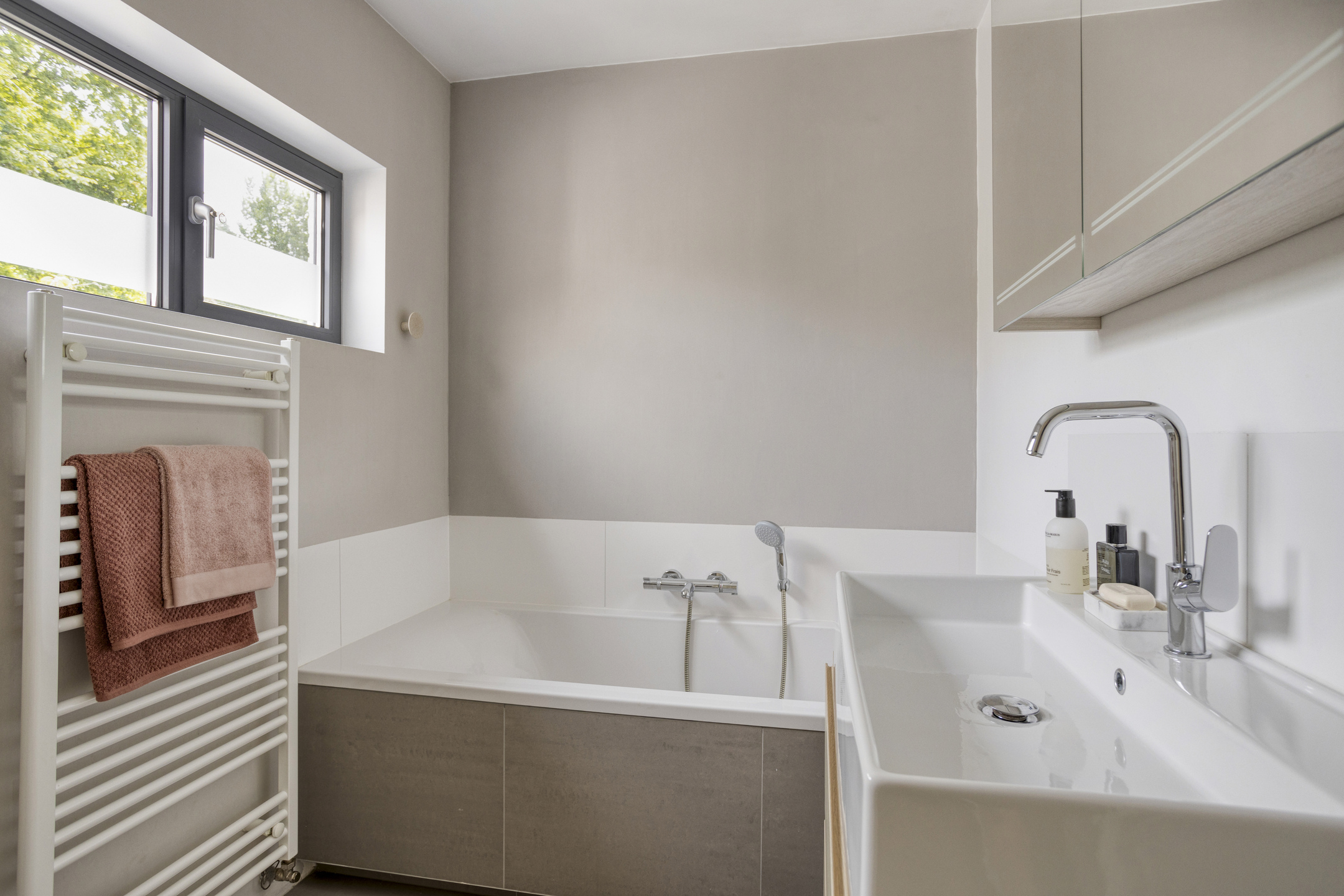 Vijf kamers met karakter, licht en comfort De eerste verdieping telt vijf volwaardige slaapkamers. De kamers zijn licht, goed in verhouding en hebben allemaal draaikiepramen waardoor het daglicht vrij naar binnen valt. Elke ruimte heeft zijn eigen karakter: van een kamer met inbouwkast tot een praktische kamer met vaste wastafel. De ouderslaapkamer beschikt over een eigen badkamer met inloopdouche, ligbad, wastafel en toilet. Daarnaast is er een tweede, complete badkamer met douche, wastafel, kastruimte en toilet.