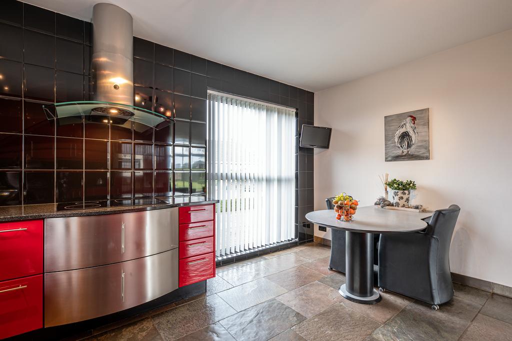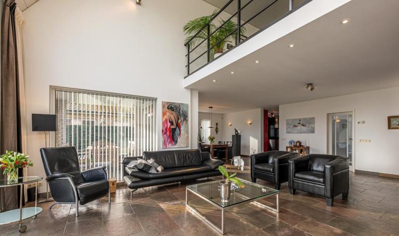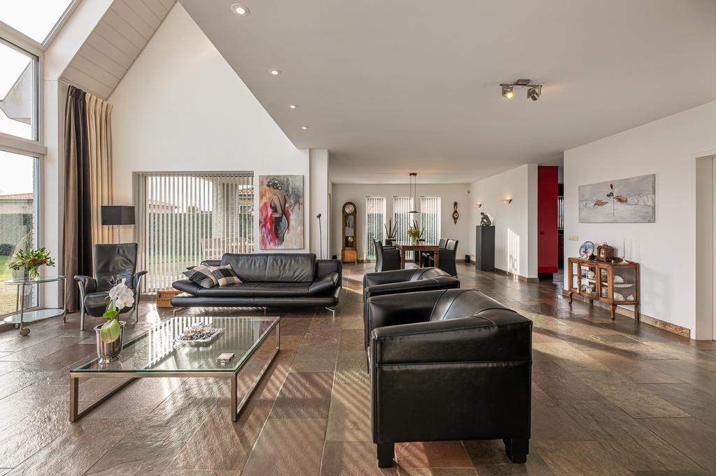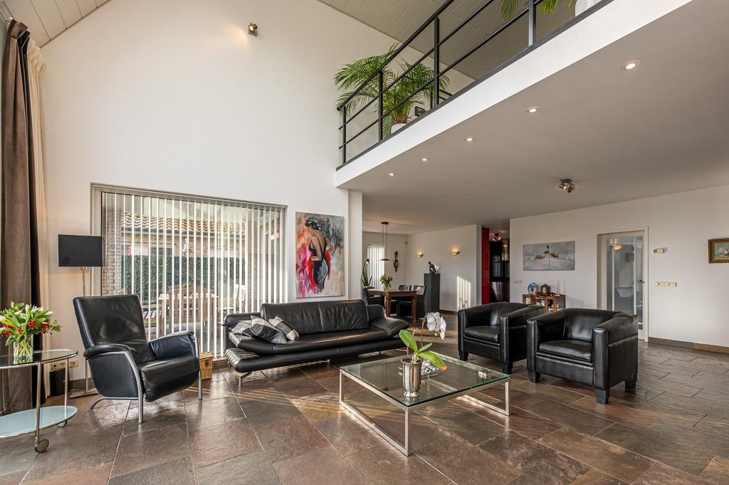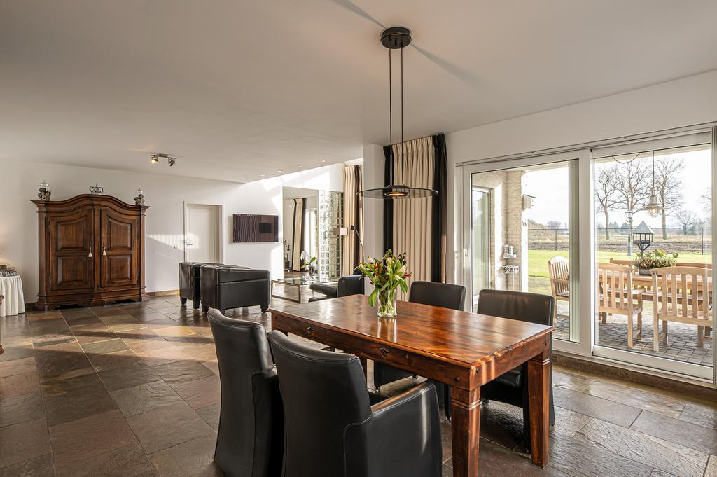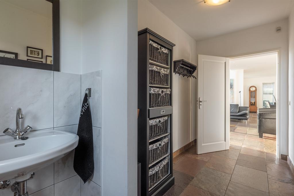U betreedt de woning via de riante entree met apart luxe gastentoilet (vernieuwd in 2014 Tornado flush toilet) met wastafel. Vanuit de entree heeft u toegang tot de riante woonkamer (ca.58 m²). Deze geniet van veel natuurlijk daglicht door de raampartijen. Vanuit de woonkamer geniet u van een geweldig uitzicht in eigen tuin en achterliggende landbouwgronden. De leefruimte is ingedeeld als woonkamer en eetkamer. Aan de woonkamer bevindt zich nog een aparte kamer die nu dient als kantoorruimte. Vanuit de eetkamer heeft u toegang tot de riante keuken met granieten werkblad. Deze is voorzien van de nodige kwaliteitstoestellen zoals 4 pits keramische kookplaat (extra breed model), afzuiging, Combi magnetron, vaatwasser, koelkast, keukenboiler en voldoende inbouwkasten. Aan de keuken bevindt zich nog een handige royale koele berging. Verder is er op de begane grond nog een zij ingang voorzien met wastafel. Vanuit de zij ingang heeft u toegang tot de ruime inpandige garage met elektrische poort.