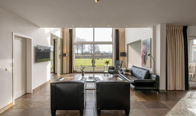 - Raampartij in de woonkamer voorzien van elektrische screens